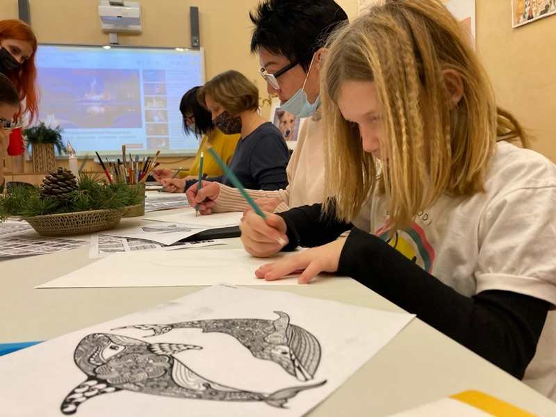 Прошли и первые творческие мастер-классы марафона: участники создали открытки в технике акварель «Снежные фантазии» и в технике дудлинг «Море волнуется…»