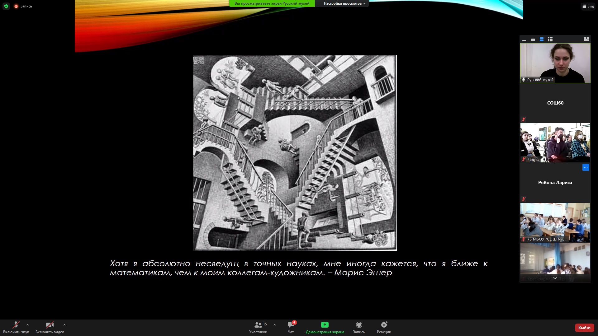 Данная встреча завершила цикл «Математика и изобразительное искусство» проекта «Точные науки сквозь призму искусства». Уже в феврале стартует следующий виток проекта, посвященный связям химии и изобразительного искусства.