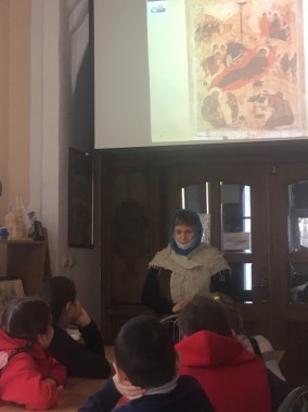 Ученики 3 класса Гимназии №46 готовятся к Рождеству. Для них было подготовлено и проведено занятие "Рождество Христово". Музейный педагог Демкина М.Ю. рассказала ребятам, кто такой Иисус Христос. Гости узнали об истории праздника и как его отмечали на Руси, как появилась традиция наряжать елку и дарить подарки, кто такие христославы. Все вместе разучили Рождественскую колядку, прослушали праздничные песнопения - тропарь и кондак. Было интересно разгадывать кроссворд, отгадывать загадки, а в конце занятия оказаться в зимнем Рождественском вертепе.