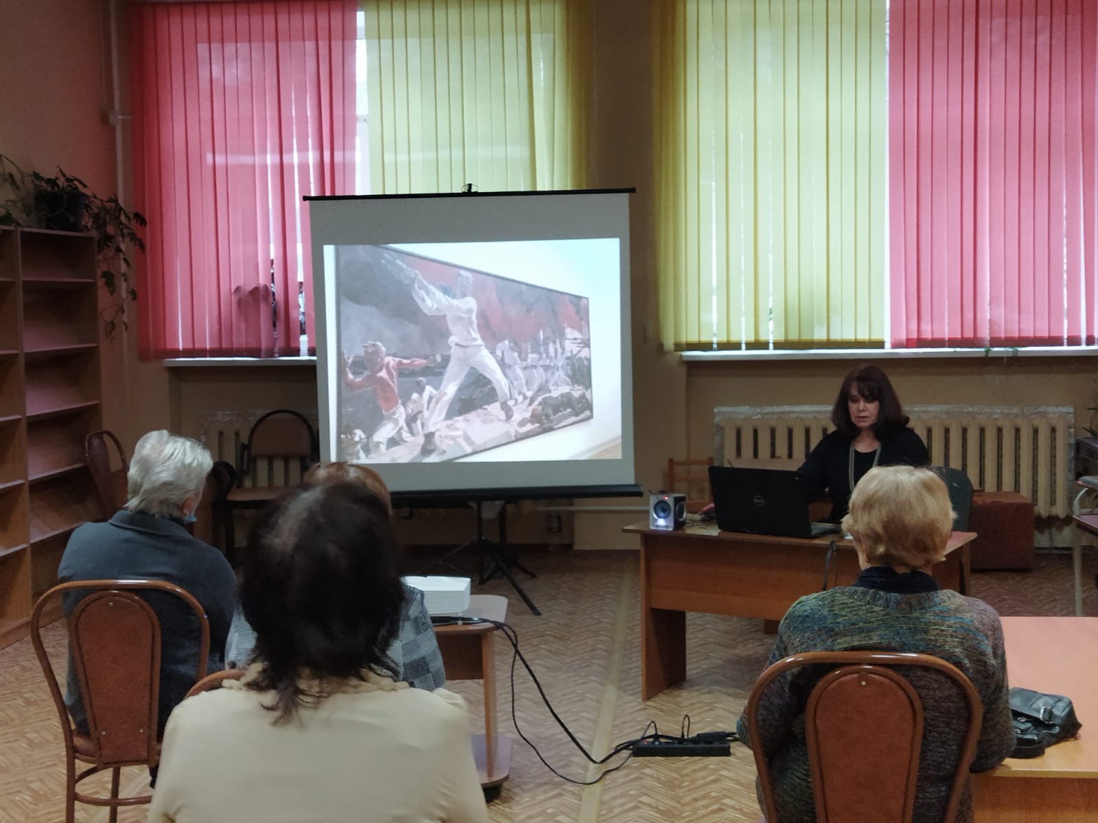 18 февраля в 16.00 Центральная районная библиотека им. В. Г. Белинского пригласила своих пользователей на лекцию, посвященную картине А. Дейнеки «Оборона Севастополя». Лекция состояласьв рамках проекта «Русский музей: виртуальный филиал» в преддверии празднования 23 февраля и была посвящена одной из героических страниц истории Великой Отечественной войны.
