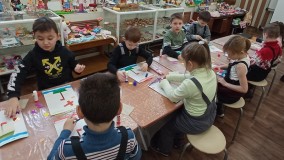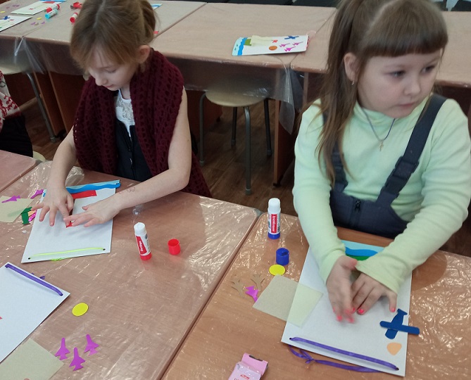 Дети прочитали стихи, которые они выучили для утренника в детском саду, рассказали, кто придёт к ним на праздник: у кого-то папы, а у кого-то дедушки. А потом выполнили творческую работу – аппликативную картину для подарка своим защитникам.