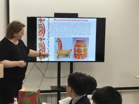 Виртуальная экскурсия по выставке «100 шедевров. Из собрания Всероссийского музея декоративного искусства» (г.Москва) позволила участникам узнать, что в русских промыслах отображается все многообразие исторических, духовных и культурных традиций нашего народа, некоторые из которых зародились столетия назад. Во время мероприятия участники совершили путешествие по самым известным своим мастерством уголкам России и познакомились с такими народными промыслами, известными по всей стране и за ее пределами, и являющимися негласными символами России, как дымковская игрушка, каргопольская игрушка, жостовская роспись, палех, филимоновская игрушка, гжель, хохлома, вологодское кружевоплетение, городецкая роспись.
