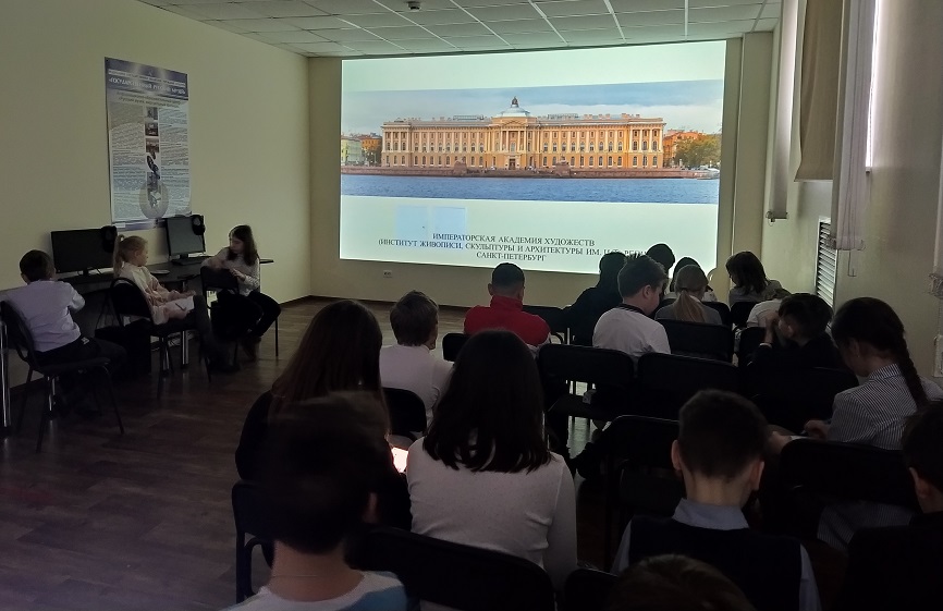 Дети смотрели и слушали внимательно, делали записи в своих тетрадях и обсуждали полученную информацию, ведь в классе им предстоит писать сообщение об этом, теперь им известном, художнике.