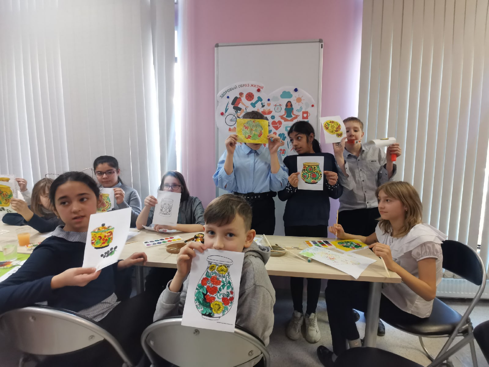 Хохлома - большое старинное торговое село в бывшей Нижегородской губернии. Это село и дало название всему промыслу. Там были красильни, склады и торговые ряды, в которых продавали золотистые миски, ложки, чаши и сосуды с горлышком. На мастер-классе мы попробовали рисовать различные узоры, яркие ягоды, посмотрели книги, также посетили виртуальную выставку Зала №11 на портале виртуального филиала Русского музея и посмотрели предметы из онлайн-коллекции в стиле огненной хохломы.