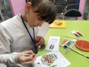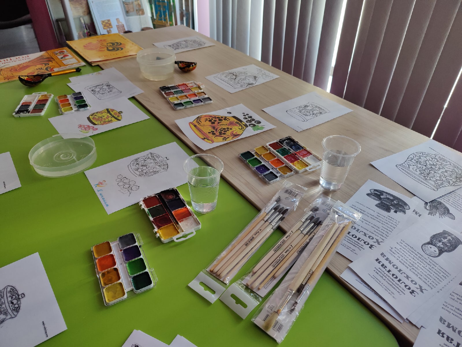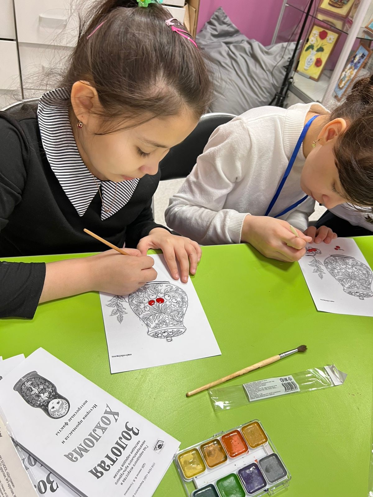 Хохлома - большое старинное торговое село в бывшей Нижегородской губернии. Это село и дало название всему промыслу. Там были красильни, склады и торговые ряды в которых продавали золотистые миски, ложки, чаши и сосуды с горлышком. На мастер-классе мы попробовали рисовать различные узоры, яркие ягоды, посмотрели книги. Посетили виртуальную выставку Зала №11 на портале виртуального филиала русского музея и посмотрели предметы из онлайн-коллекции в стиле огненной хохломы.