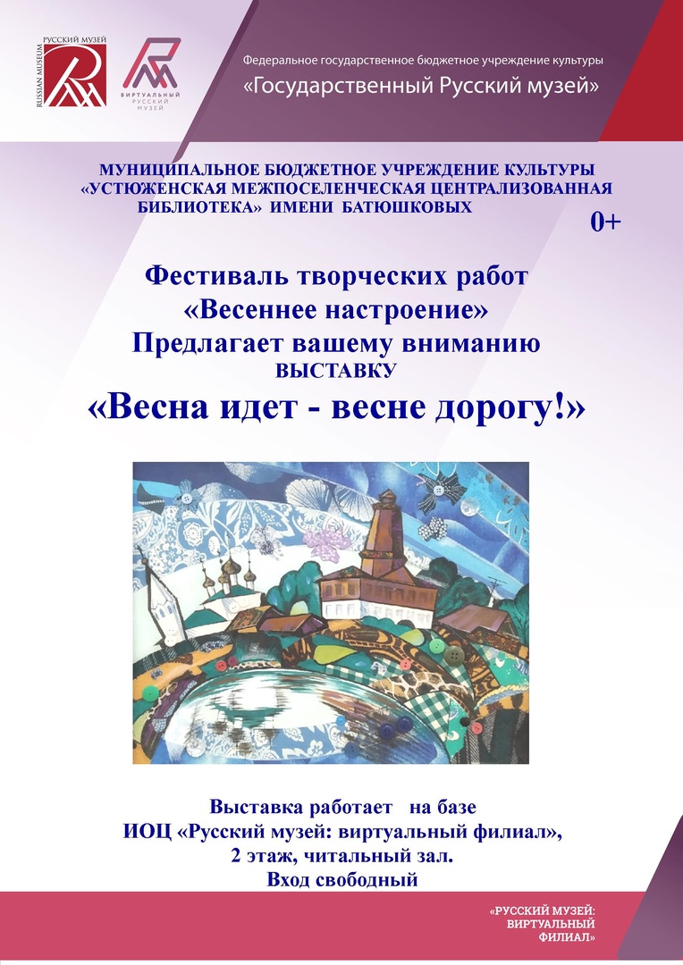 Информационно – образовательный центр «Русский музей: виртуальный филиал», расположенный на базе библиотеки имени Батюшковых, представляет вниманию зрителей выставку "Весна идет - весне дорогу".