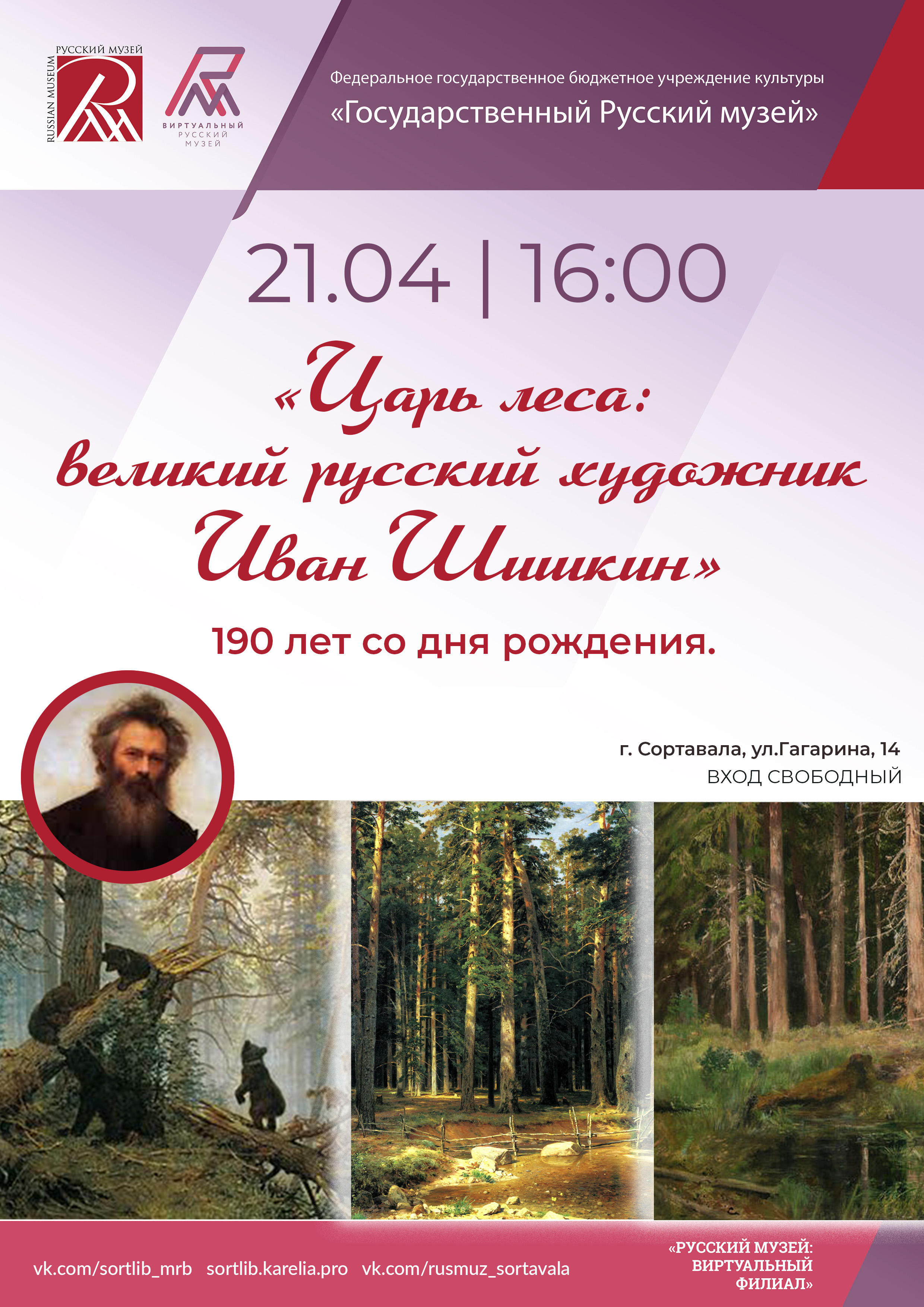 В этом году исполняется 190 лет со дня рождения Ивана Ивановича Шишкина – русского художника-пейзажиста, живописца, рисовальщика и гравёра-аквафортиста.