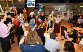 В первую очередь мы постарались познакомить наших гостей с традициями, которые отразили русские художник в своих картинах, рассказали, как раньше гуляли на праздниках. Участники не просто расшили свой кругозор, а сами участвовали в народных забавах: колядовали, пели-зазывали весну, гадали, водили хоровод, а также смогли поучаствовать в мастер-классе «Роспись пасхальных яиц».
