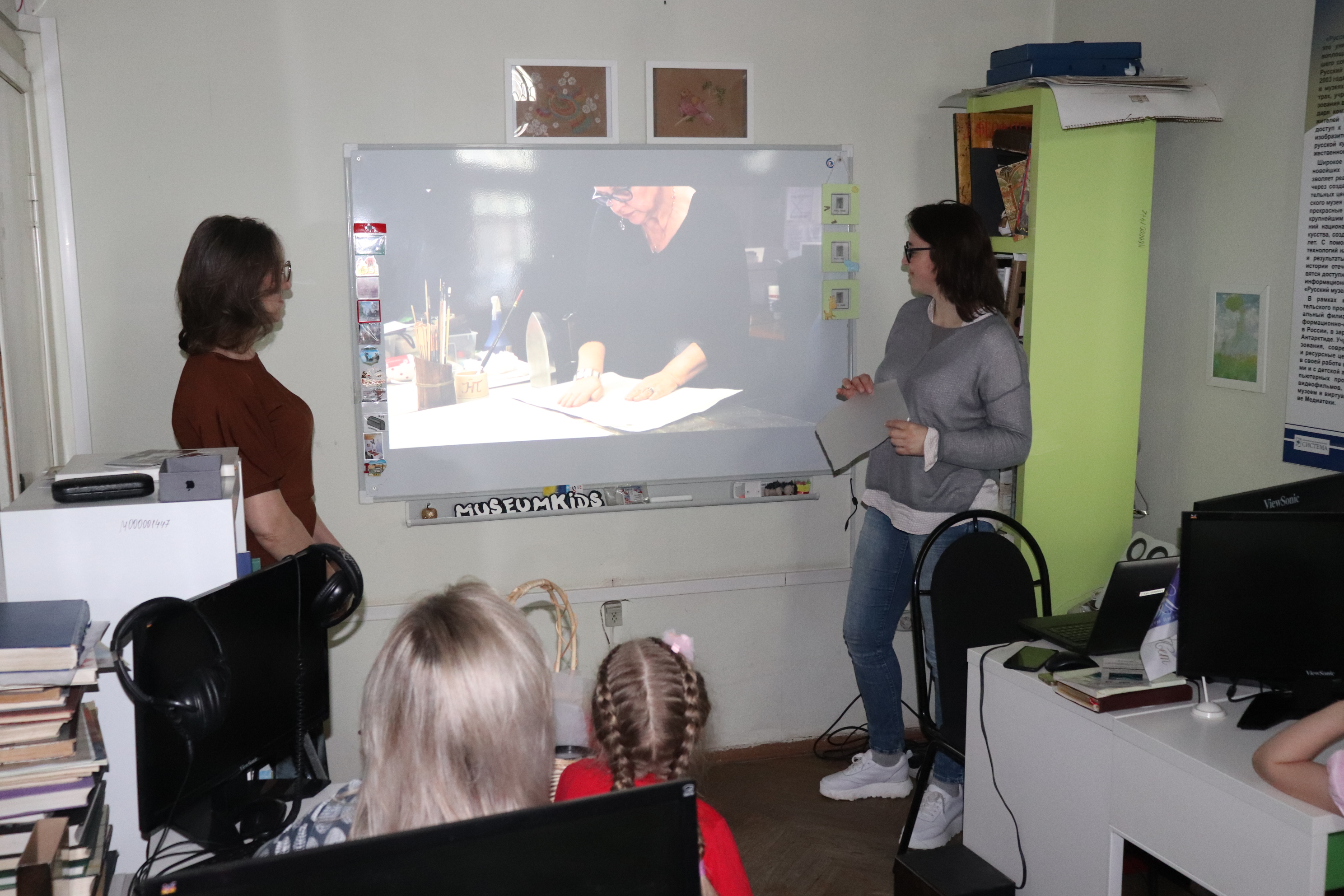 Во время своего посещения в рамках юбилейной программы реставрационных мастерских Русского музея Татьяна Свидунович и Вероника Абашина провели занятие для дошкольников "Профессия - реставратор": ребята посмотрели фильм "Неизвестный главный герой" о том, как портрет XVIII века обрел автора, поговорили об инструментах музеного реставратора. У ребят была возможность подержать в руках настоящие инструменты, которыми работают реставраторы. Они узнали про скальпель, рыбий клей, утюг, ломпендель и другие интересные вещи.