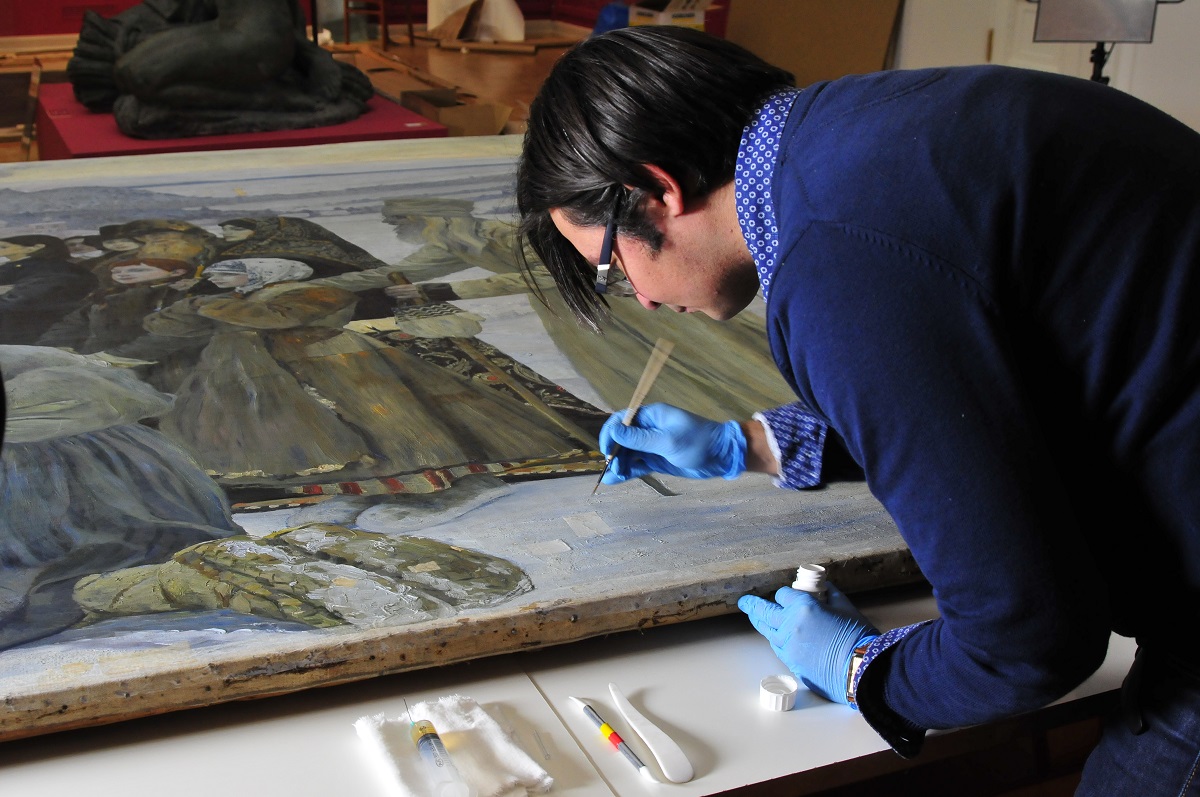 Самые ранние свидетельства о проведении в музее реставрационных работ относятся к 1898 году: тогда наблюдения за сохранностью коллекции «Русского музея Императора Александра III» проводили приглашенные специалисты. 25 апреля 1922 года в Русском музее была открыта первая реставрационная мастерская. Ее сотрудники заложили основу школы реставрации, традиции которой поддерживаются и сегодня, позволяя Русскому музею день за днем подтверждать статус одного из крупнейших в России и мире научно-исследовательских и реставрационных центров.