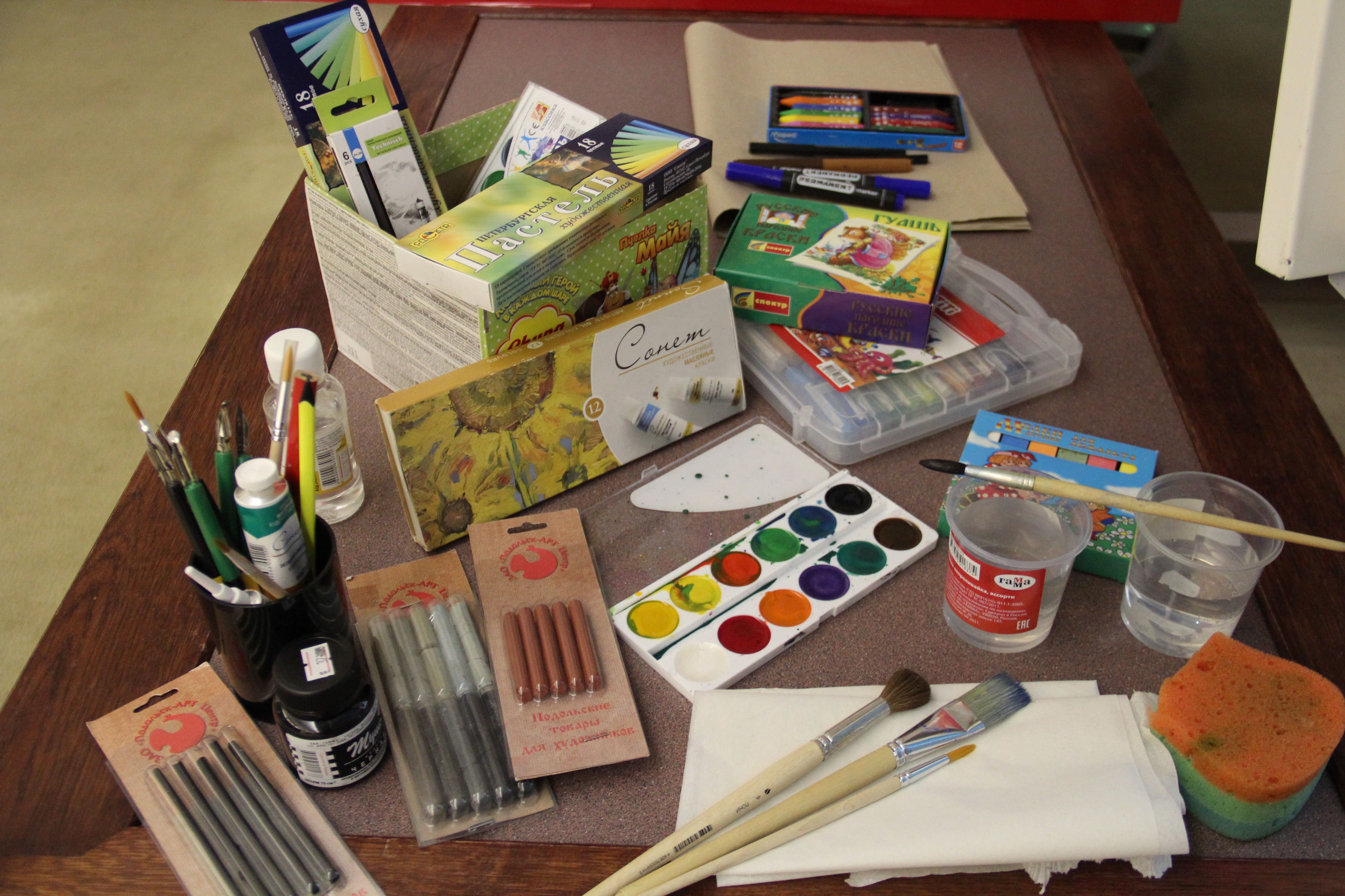 Оказалось, что живописцу необходимо много разных предметов, чтобы осуществить свой замысел: мольберт и холст; масляные краски, акварель, гуашь.