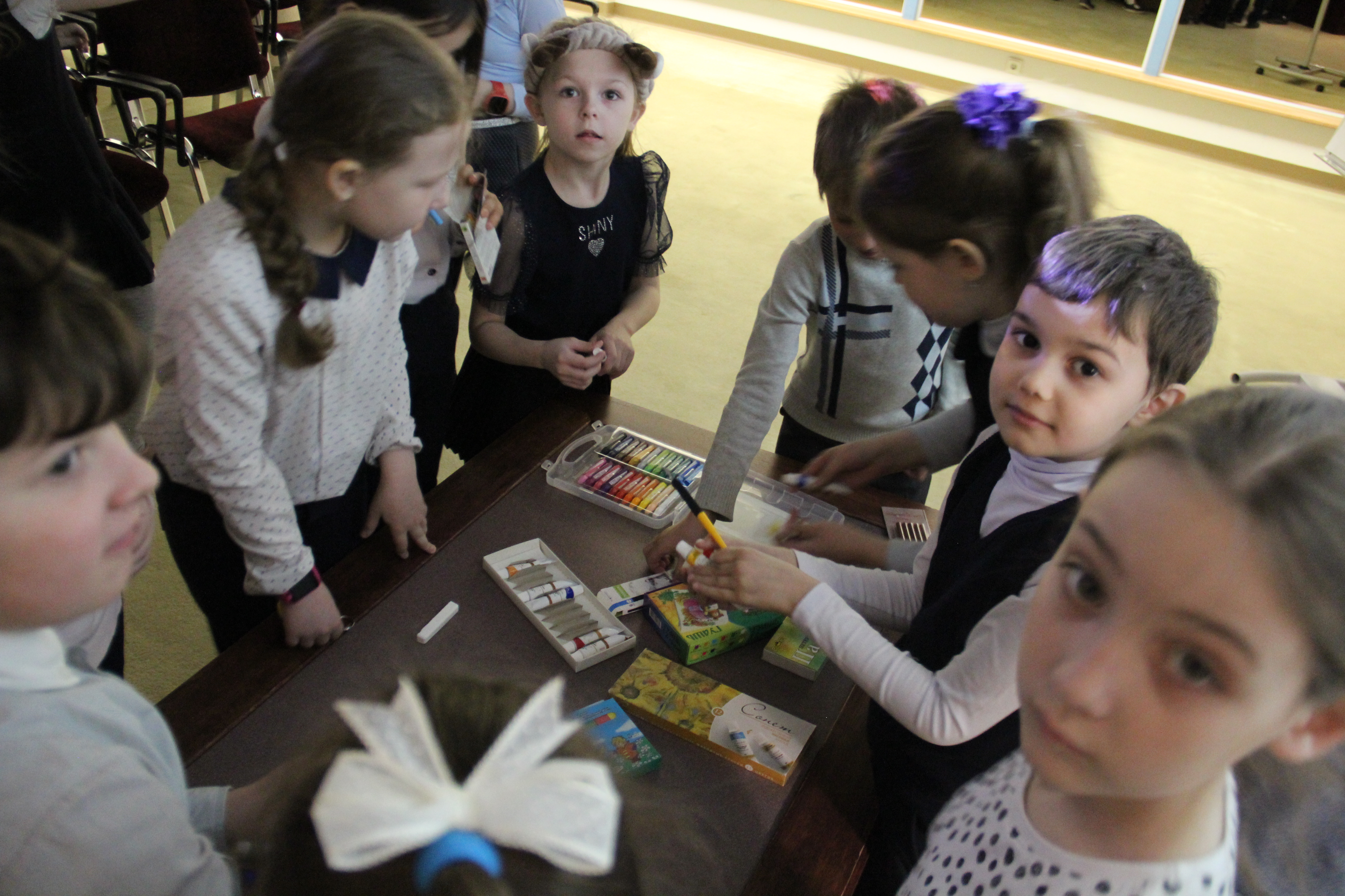 Ребята посмотрели фильм, внимательно рассмотрели картины о мастерских разных художников.