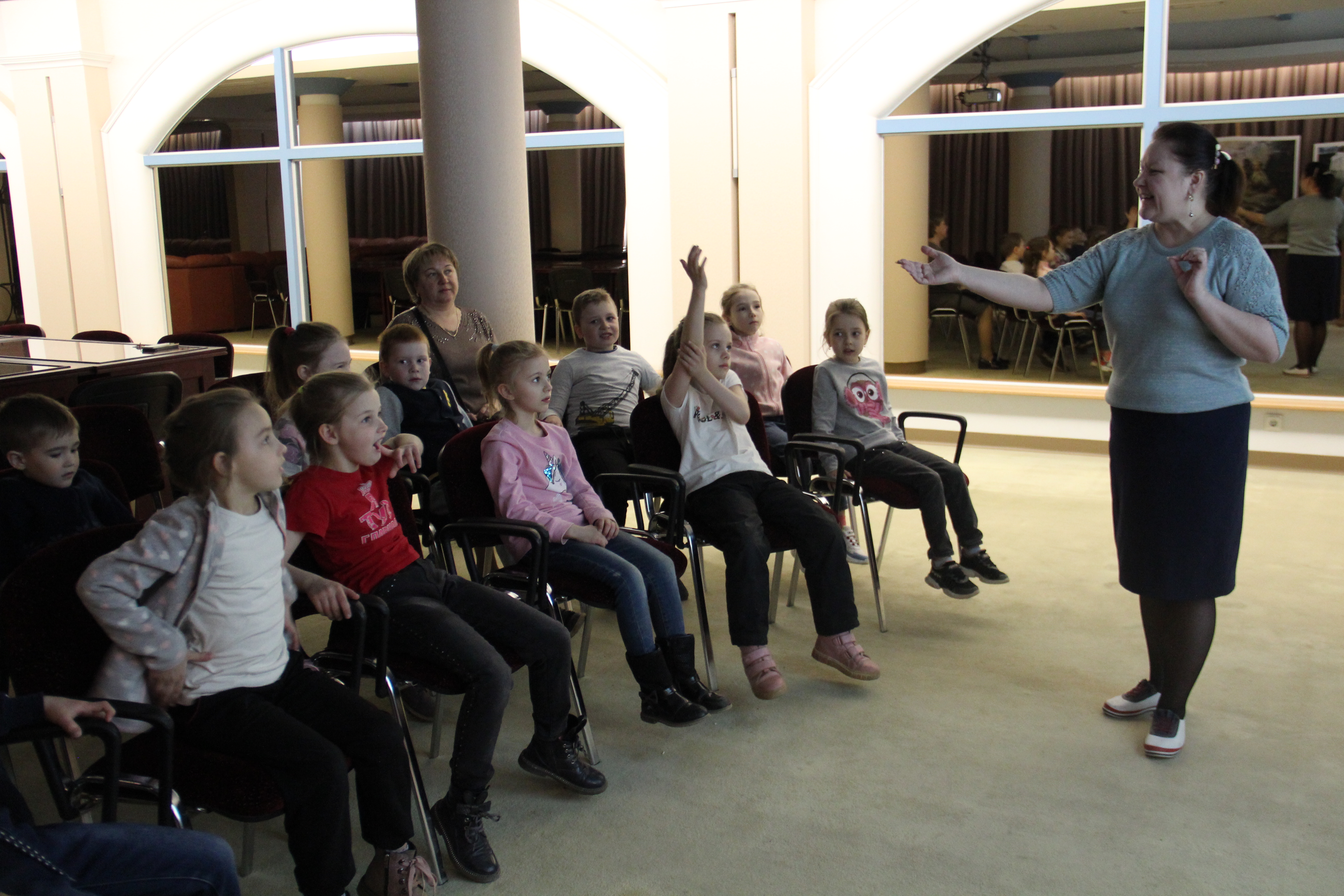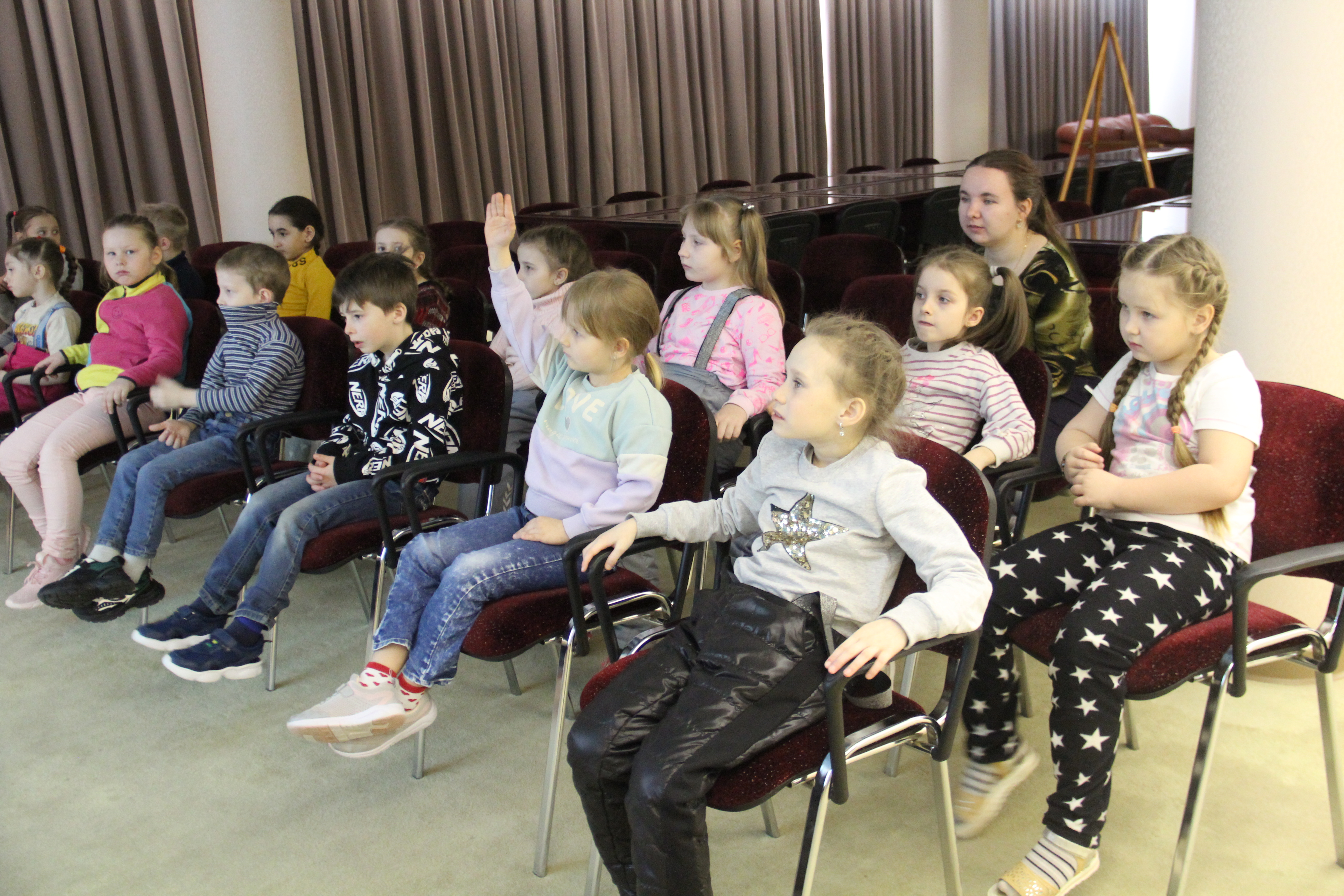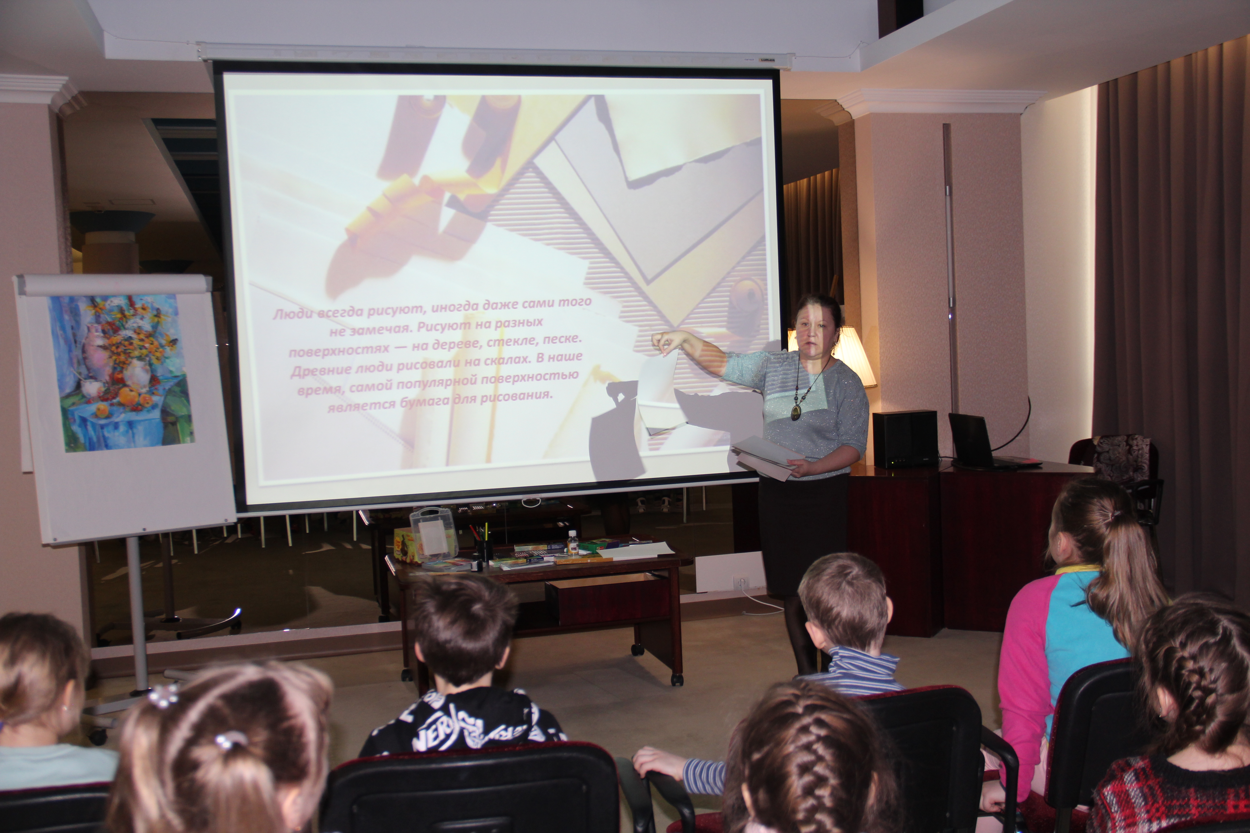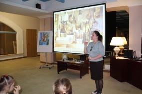На экскурсии с маленькими зрителями мы представили, что художник пригласил нас в гости в свою мастерскую.