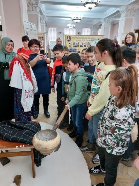 Одной из остановок маршрута стал и краеведческий музей. Здесь участники разных возрастных групп познакомились с выставкой «Дивный лик народа-творца».