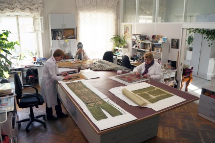 В 1961 году в музее была создана мастерская реставрации тканей. Специалисты мастерской занимаются раскрытием произведений от поздних наслоений, удалением загрязнений разными способами, укреплением, восполнением утрат. Наиболее ответственные и сложные работы связаны с консервацией памятников древнерусского шитья XV - начала XVIII века, представляющих особенно значительную историческую и художественную ценность. Не меньше времени и внимания уделяется произведениям прикладного и народного искусства. Разработанные в мастерской методики консервации и реставрации шпалер, бисерных вышивок, народных головных уборов способствовали тому, что основная часть коллекции этих произведений в Русском музее находится в хорошем состоянии.