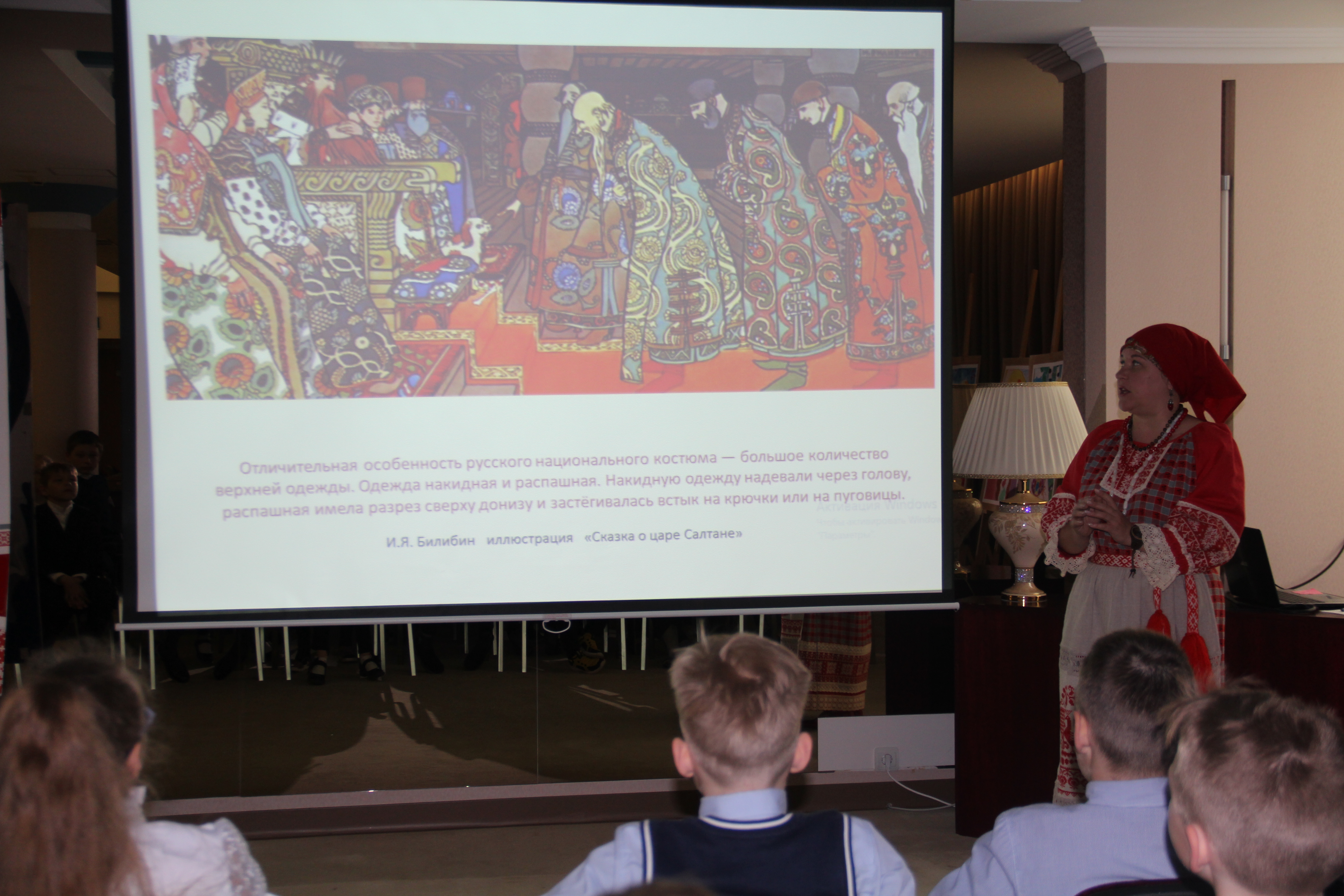 Наша экскурсия была посвящена знакомству с русским народным костюмом. Её задачей было показать его красоту, рассказать, как выглядела будничная и праздничная народная одежда, как и зачем украшали её?