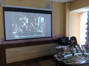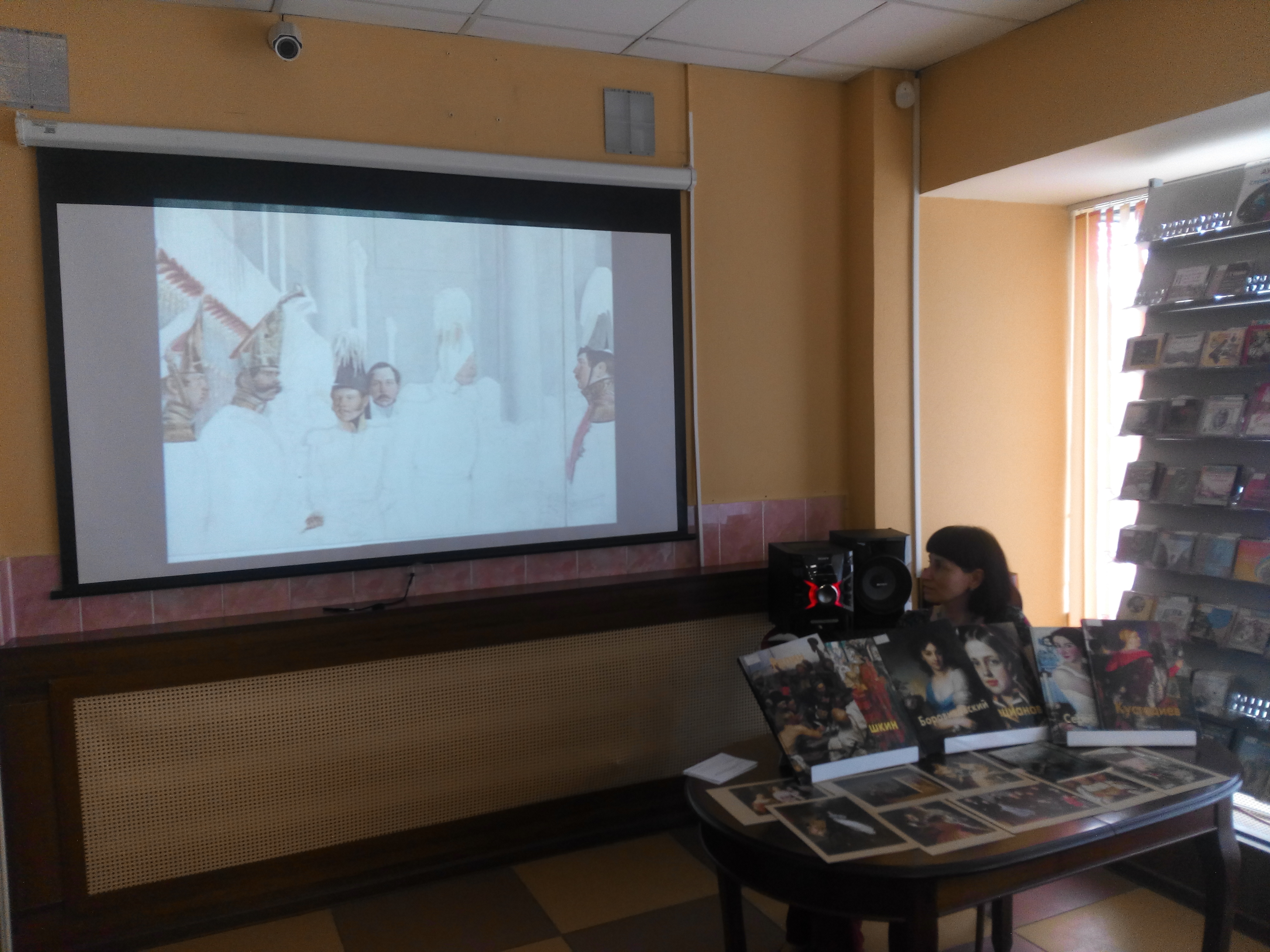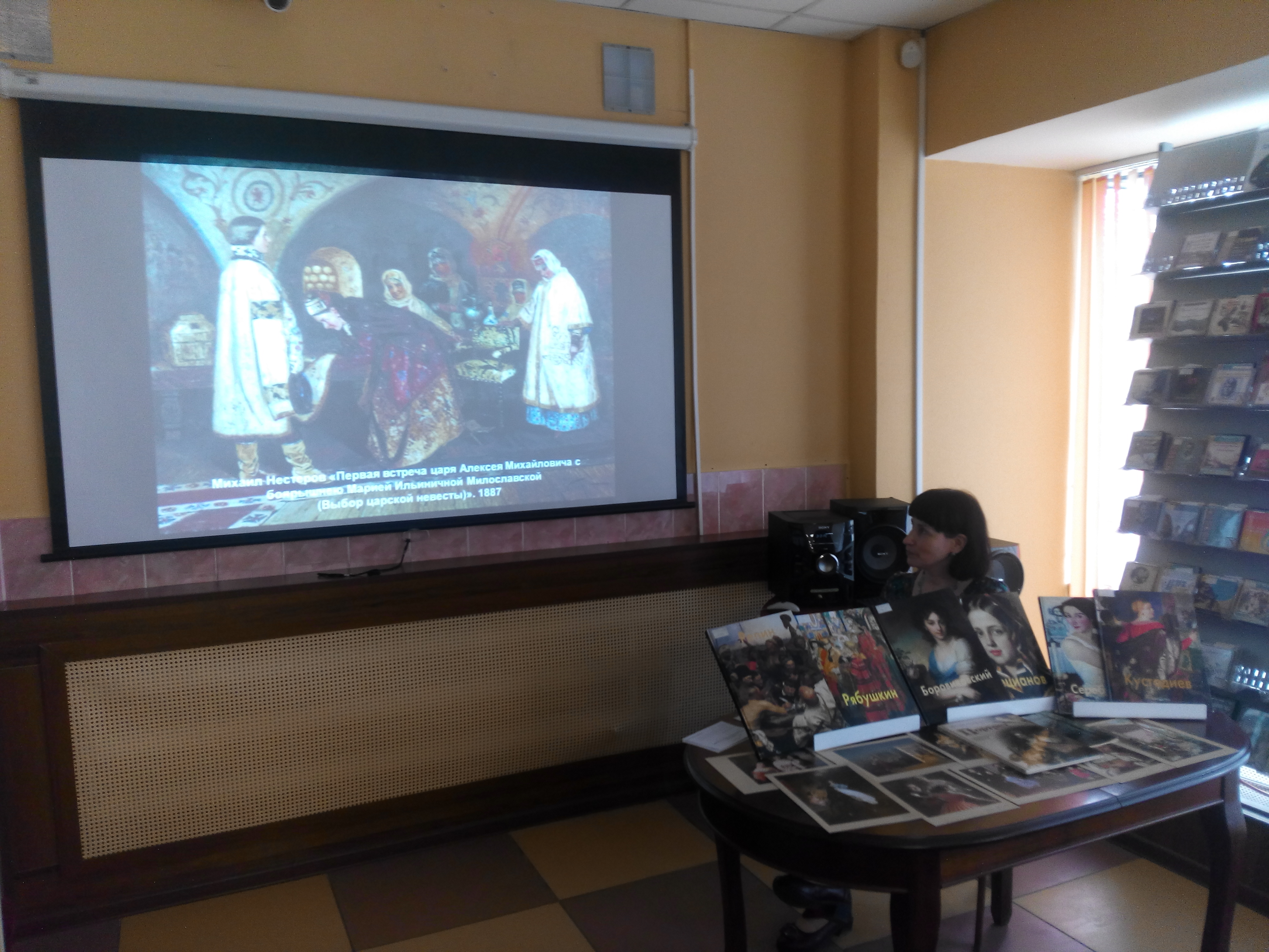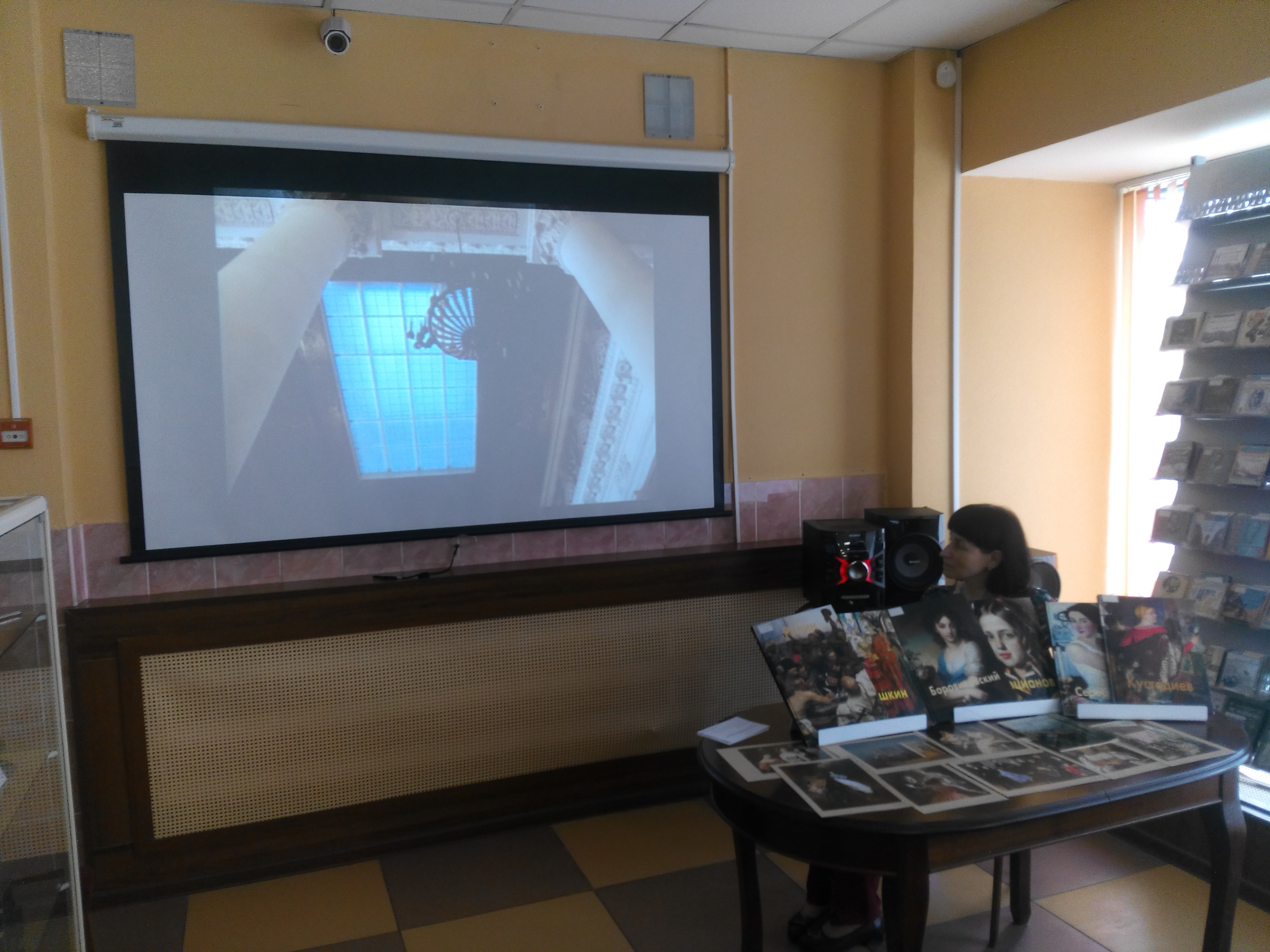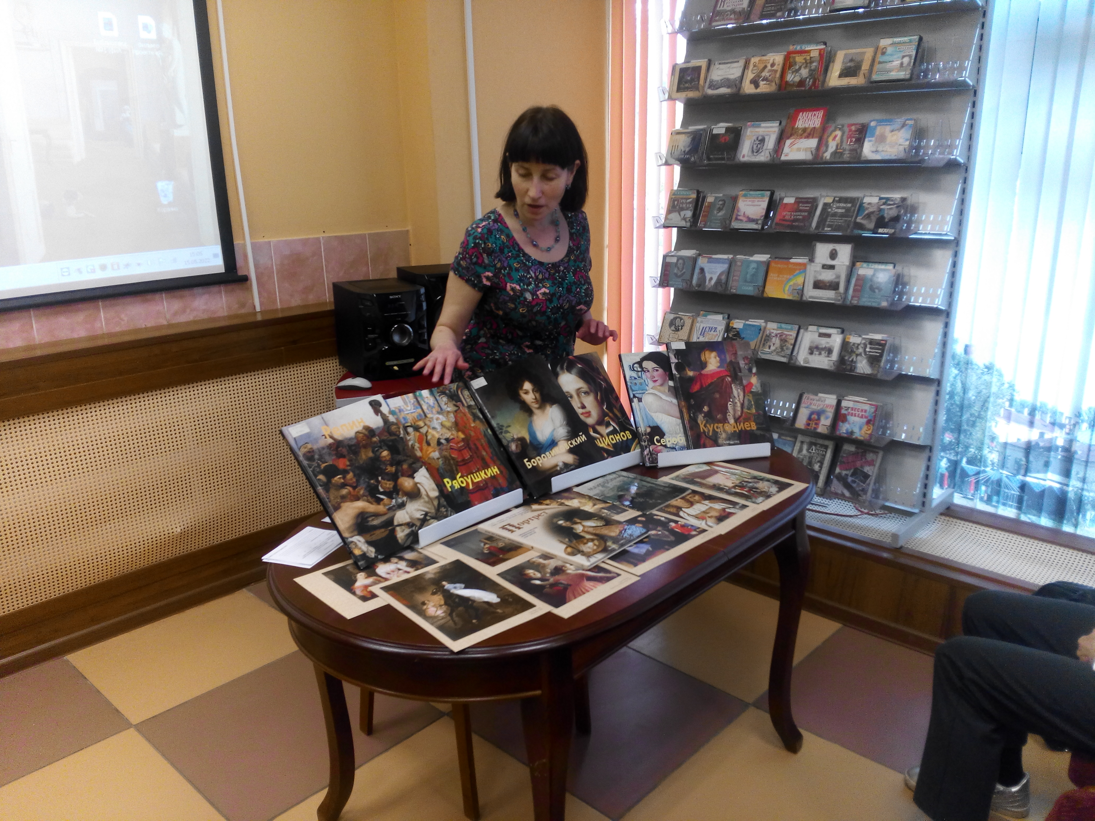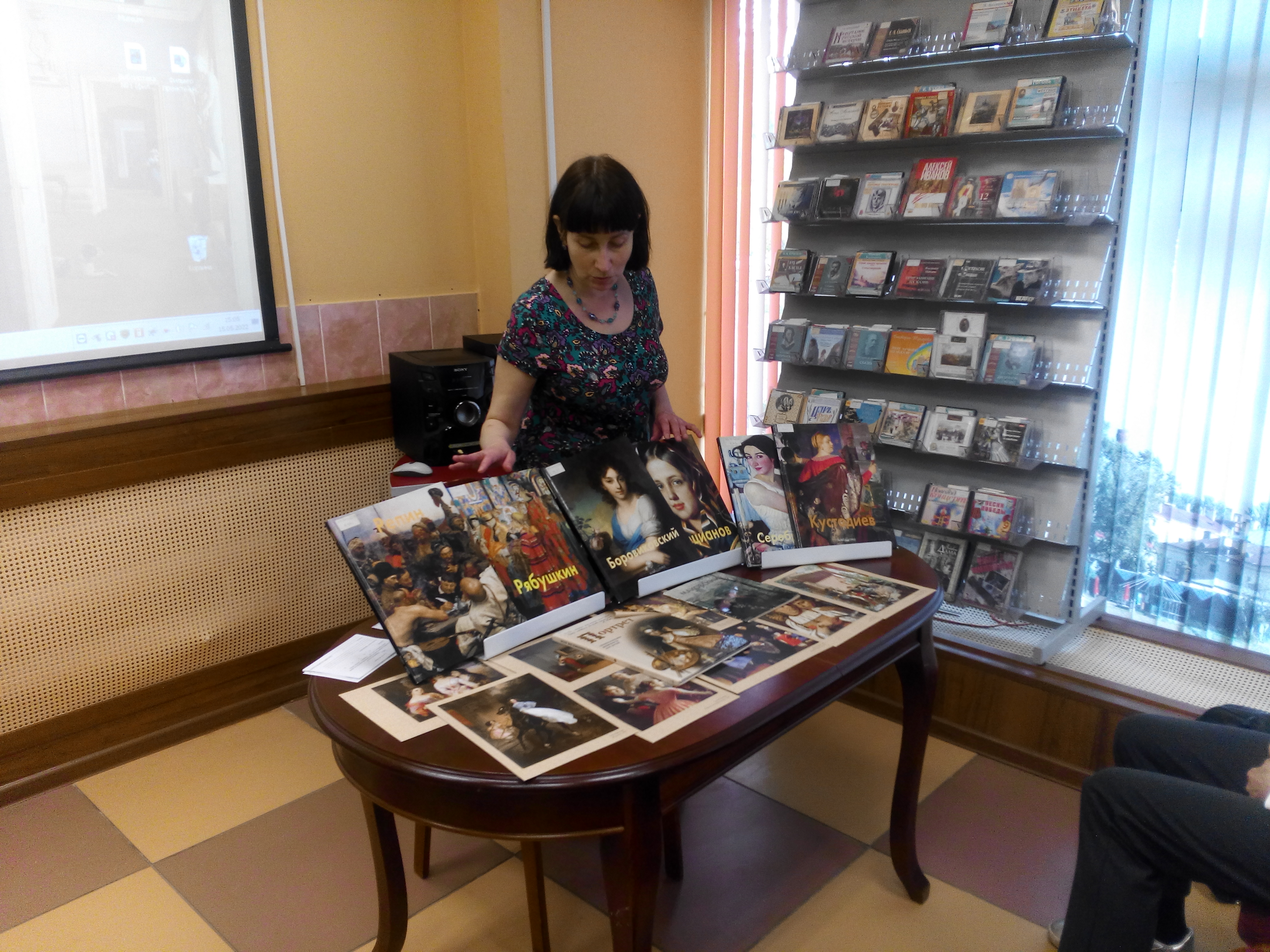 Зрители были приглашены в зал искусства библиотеки №1, где находится большая коллекция альбомов художников – портретистов: Карла Брюллова, Алексея Венецианова, Павла Федотова, Зинаиды Серебряковой и др.