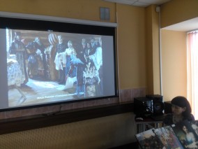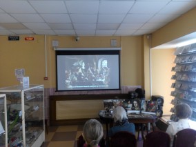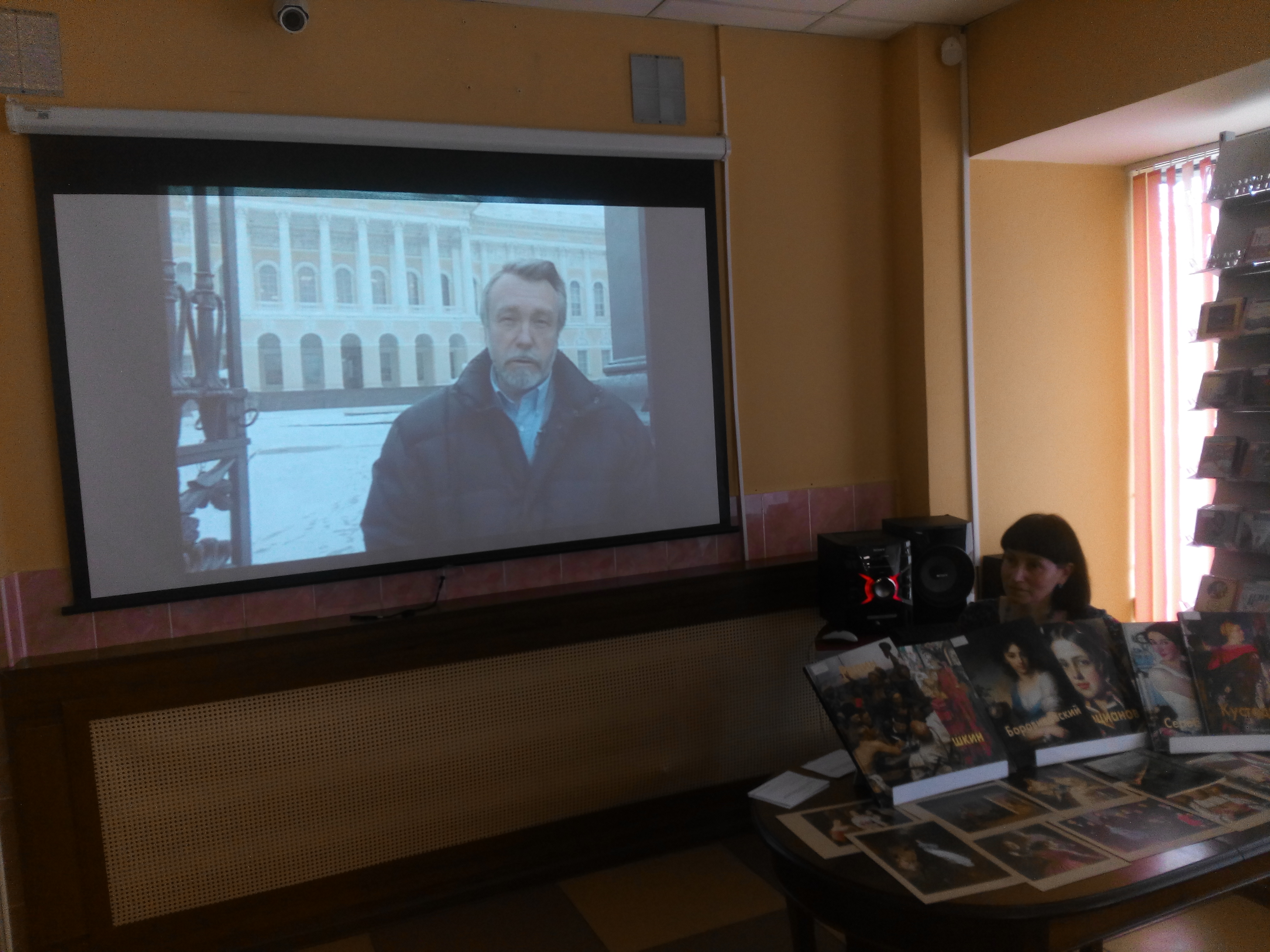 Затем был показан фильм «Павел Федотов» из Медиатеки портала "Виртуальный Русский музей". Художник имел множество знакомых в самых разных слоях общества. На его полотнах изображены семейства Флугов, Ждановичей, члены семьи художника. Модели Павла Федотова чаще всего предстают перед зрителем в привычной домашней обстановке, в окружении вещей, приоткрывающих их образ жизни и духовный мир.