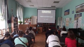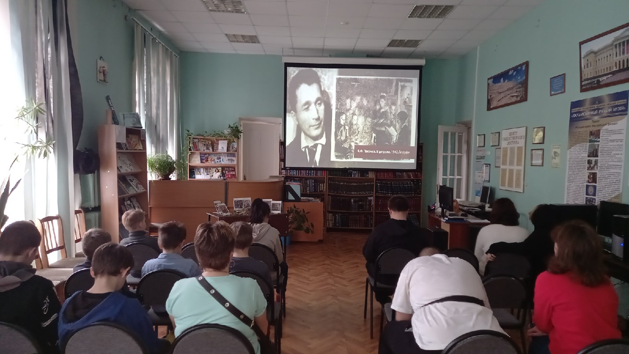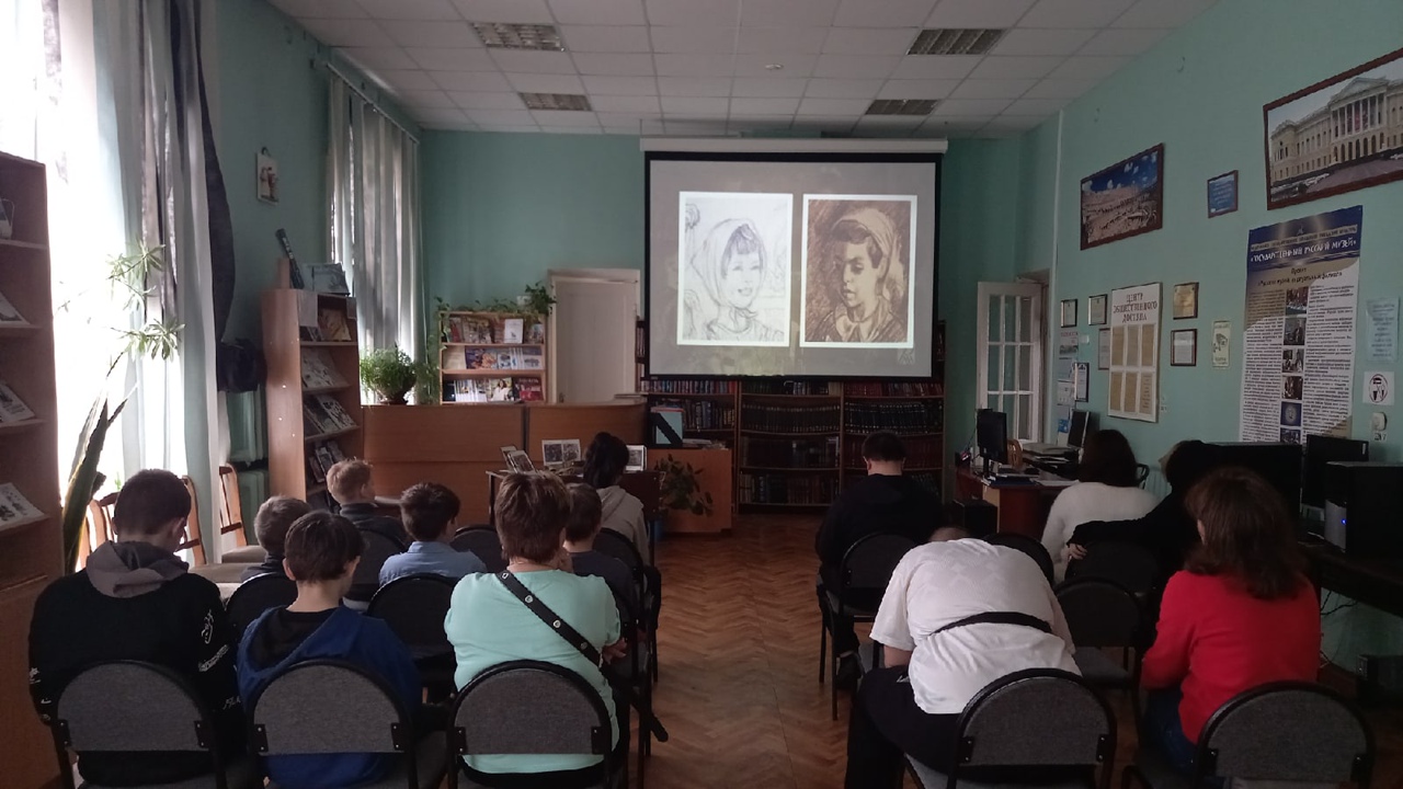 Детям был показан один из видеосюжетов  онлайн-акции "ИЗОМАРАФОН "ХУДОЖНИК И ВОЙНА" - история создания эстампа "В детском доме" Алексея Федоровича Пахомова.