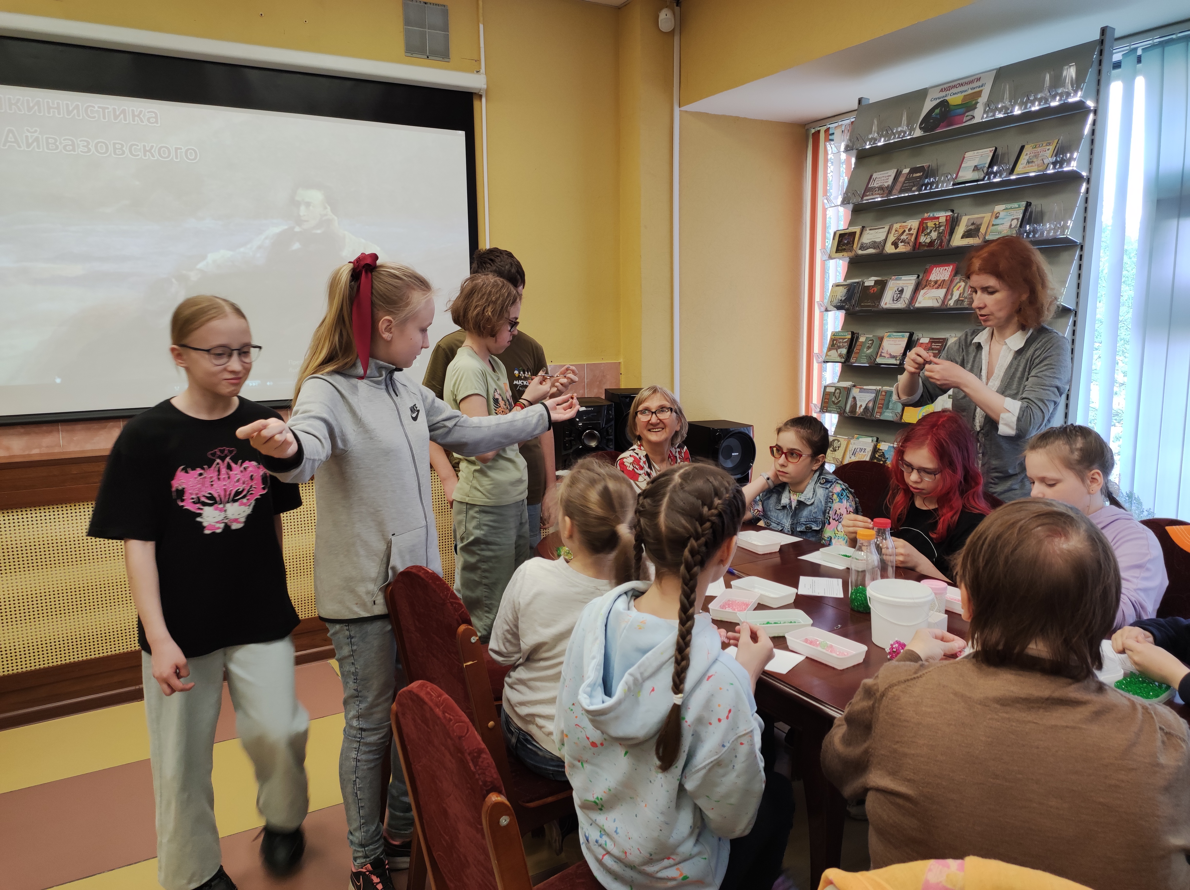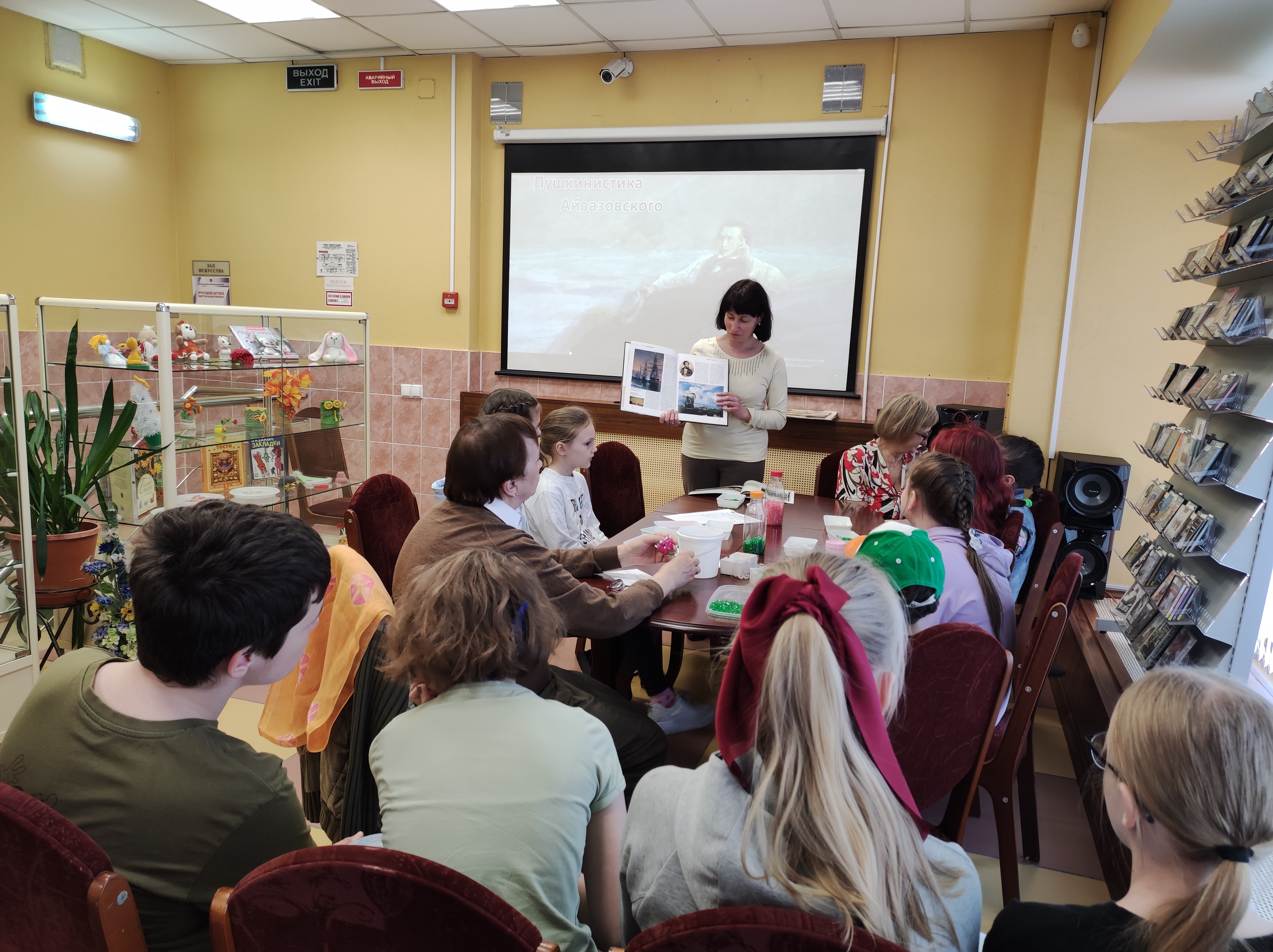 2 июня в зале искусства состоялась интерактивная программа «Пушкинистика Айвазовского». Мероприятие началось с показа мультимедийного фильма, повествующего о творчестве знаменитого художника-мариниста Ивана Константиновича Айвазовского и его картинах, посвящённых «солнцу русской поэзии» - А.С. Пушкину. Художник был одним из тех, кто, по словам Н.В. Гоголя, «зажигал свои свечи от творческого огня поэта». В фильм включены воспоминания И.К. Айвазовского о его встречах с А.С. Пушкиным, говорится о творческих исканиях, нелегкой судьбе и оставленном нам художественном и литературном наследии самобытного русского художника.