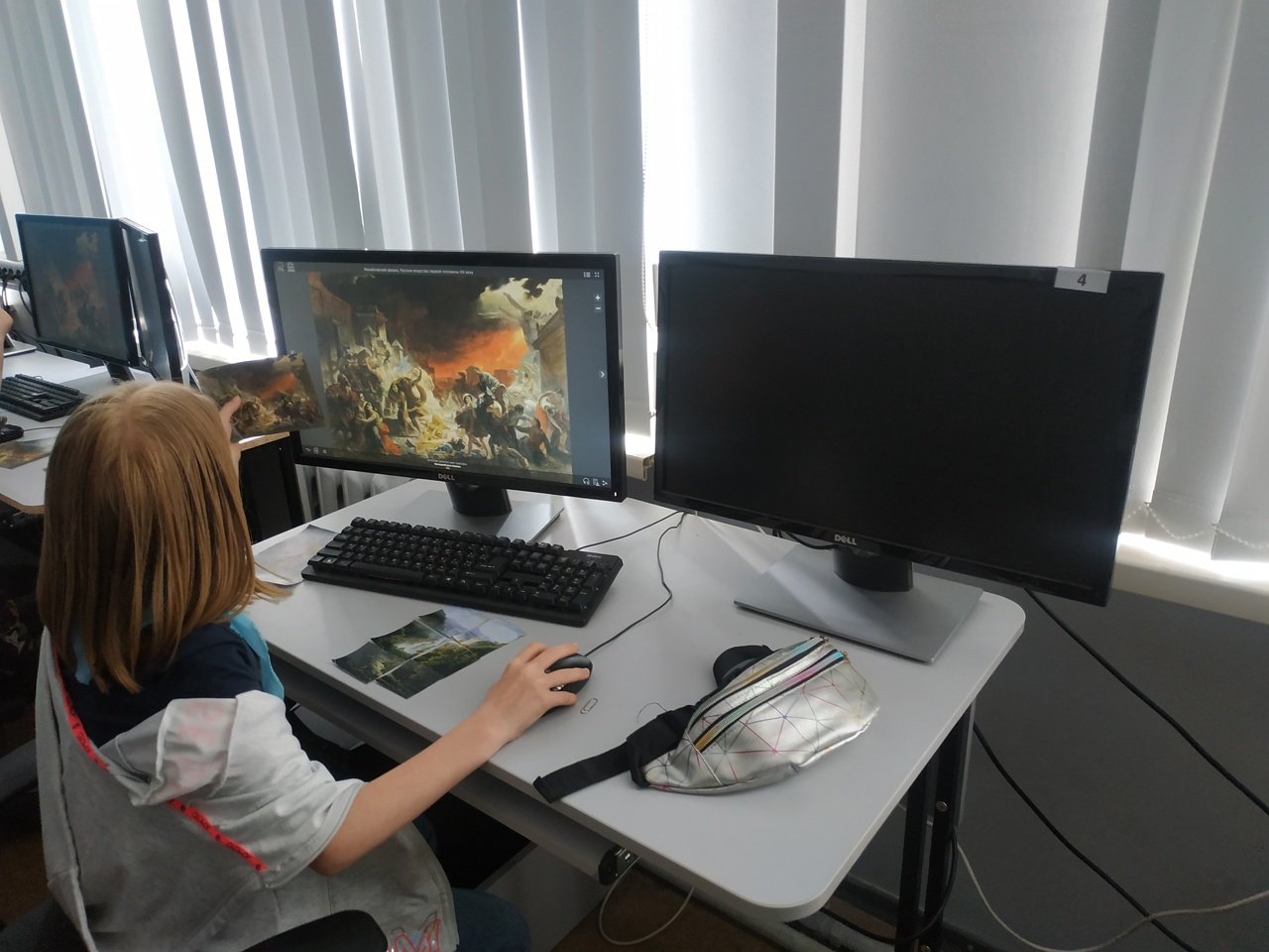 Во время занятия учащиеся средней школы № 36 г. Сыктывкара ответили на занимательные вопросы на тему произведений отечественного искусства. Решения можно было найти, лишь внимательно изучив экспозицию музея и его виртуальные этикетки. Все ребята успешно справились с заданиями!