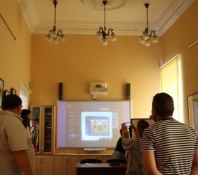 Слушателям были предложны отрывки интерактивной программы "Победа над Солнцем" и тематический фильм об осмыслении Малевичем образа нового времени в искусстве "Казимир Малевич. Преображение" из медиатеки Информационно-образовательного центра Русского музея.