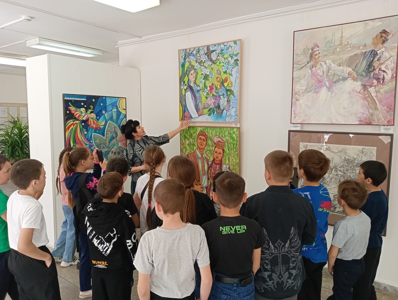 В июне у юных посетителей Стерлитамакской картинной галереи появилась возможность познакомиться с замечательной выставкой татарстанских художников "Навеки вместе. Татарстан-Башкортостан-транзит". Детишки с удовольствием слушают увлекательные сказки, которые им рассказывают картинки с выставки: про дивный город-остров Свияжск, волшебную страну Булгарию, а также про древнее Казанское ханство, наследницей которого стала прекрасная Казань.