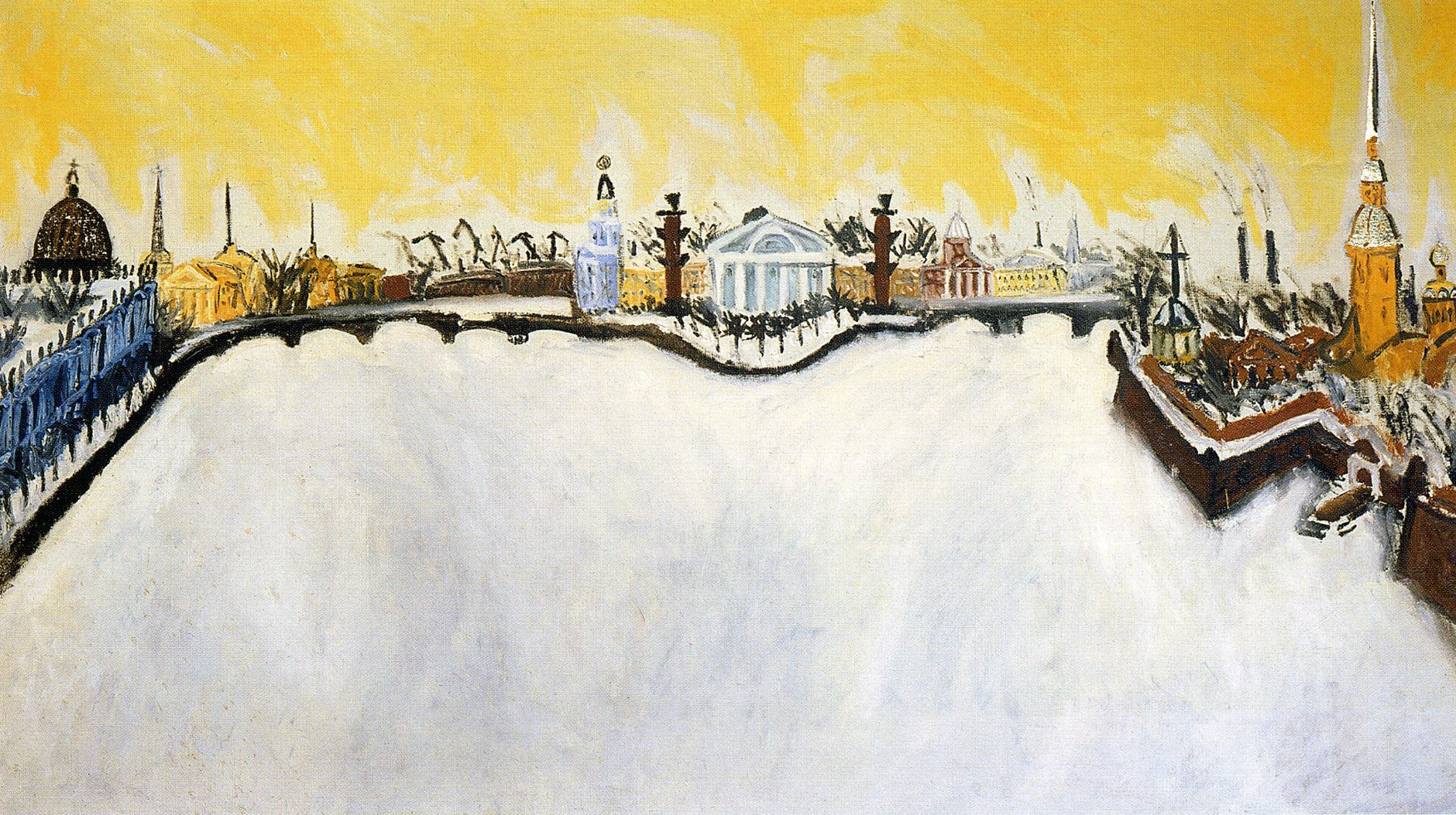 На лекции был рассмотрен образ города, воплощенный в произведениях Алексея Зубова, Федора Алексеева, Семена Щедрина, Василия Садовникова, Василия Сурикова, Александра Бенуа, Кузьмы Петрова-Водкина, Мстислава Добужинского, Анны Остроумовой-Лебедевой, Вячеслава Пакулина, Тимура Новиков и других известных художников.