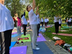 18 июня в рамках Международного сотрудничества сотрудники виртуального филиала Русского музея в Усть-Каменогорске Карибаева Ш.М., Асыл А.А., Амангелды А. провели совместно с культурным центром С.Вивекананда посольства Индии в РК Международный день йоги в парке имени Касыма Кайсенова.