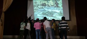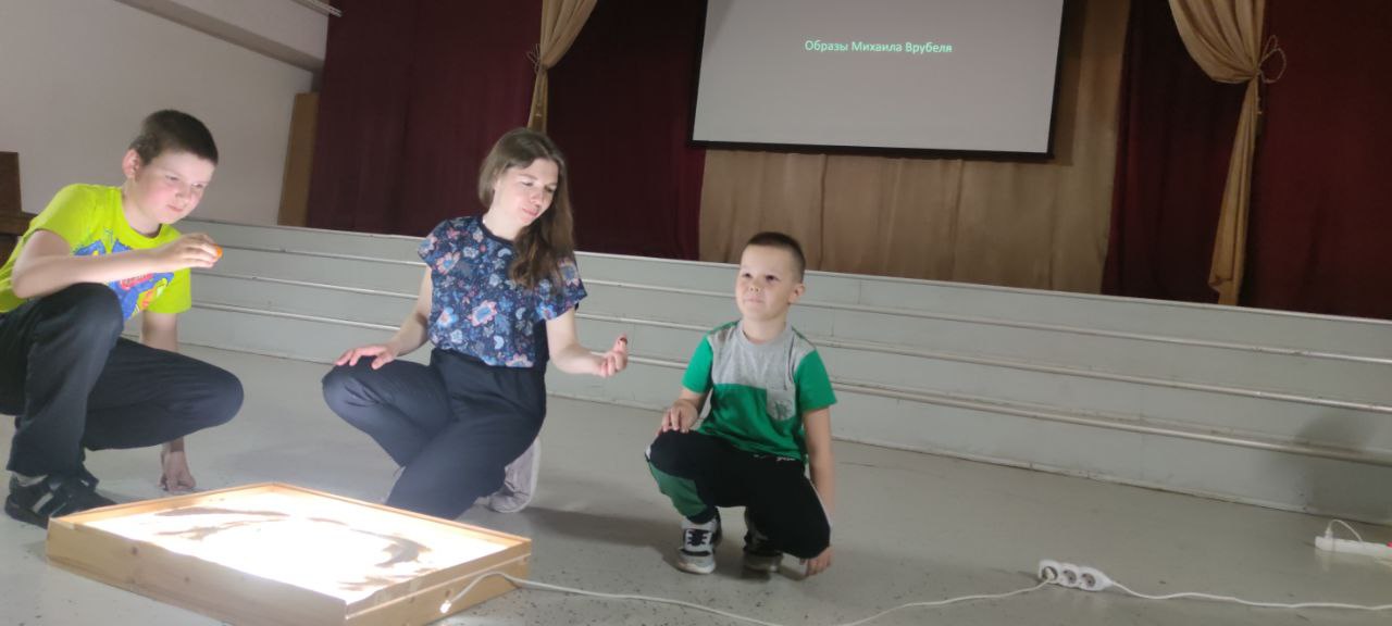 В этом году летние занятия посвящены творчеству русского художника Михаила Врубеля в связи с открывшейся выставкой в Государственном Русском музее. На выставке представлены картины из собрания Русского музея, Третьяковской галереи и частных собраний. Ребята знакомятся с образами Пана, Богатырей, Морского царя и царевен, любуются уже знакомой по учебникам литературы знаменитой картиной Царевна-Лебедь. Некоторые дети согласились поучаствовать в проекте "Дети - детям об искусстве" и с удовольствием поделились впечатлениями "на камеру". Видеоролик "Сказочные образы художника Михаила Врубеля" будет готов осенью. Съемки были организованы совместно с режиссером ДДЮТ Першиной Екатериной Викторовной.