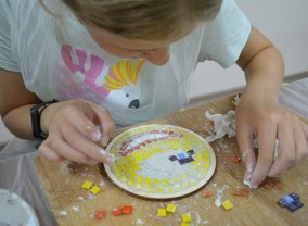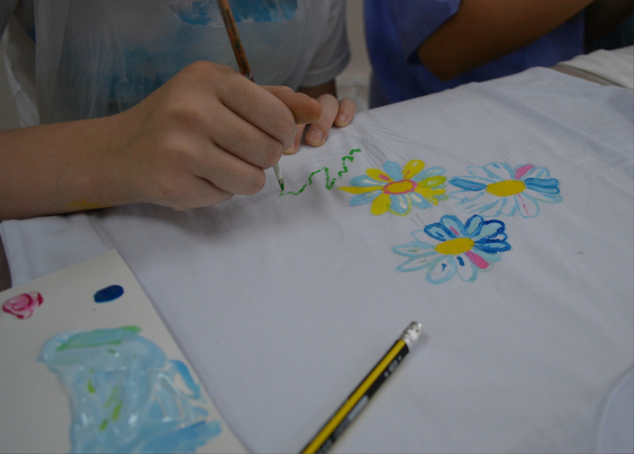 Желающие могли посетить и мастер-классы в КВЦ «Радуга» оффлайн: по законам симметрии создавать идеальную мозаику и экспериментировать с окрашиванием ткани на росписи футболок.