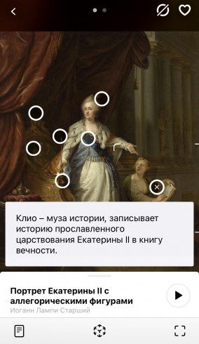 Более детально изучить представленные в галерее портреты можно не только в виртуальном туре, но и в приложении «Артефакт». Специально созданный мультимедиа гид «Портретная галерея Дома Романовых» содержит аннотации, аудиогиды и специальные «точки интереса» — элементы дополненной реальности, которые позволяют акцентировать внимание посетителей на деталях произведений.