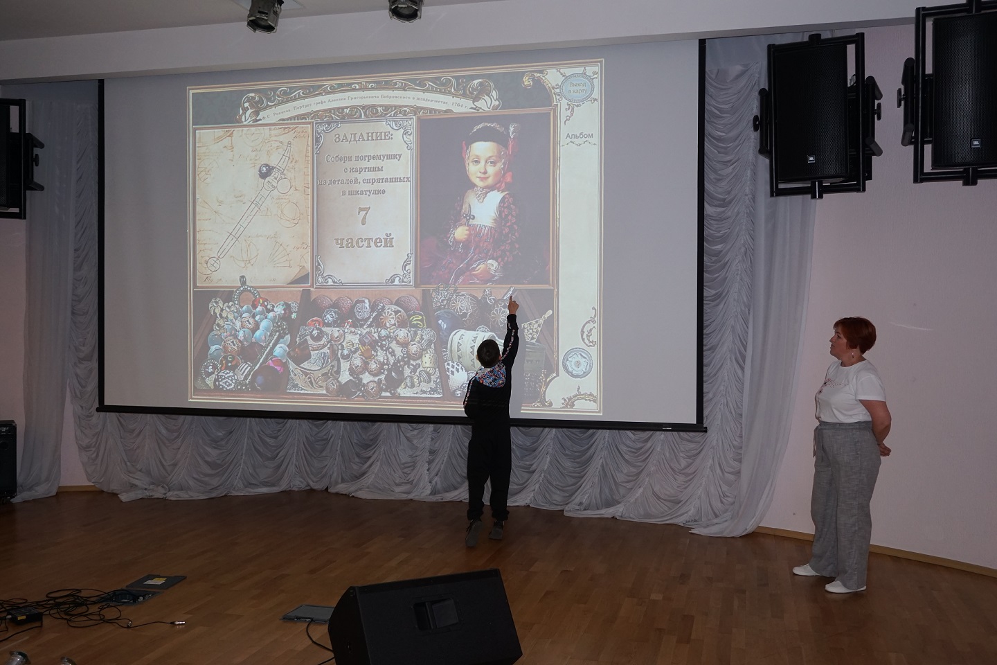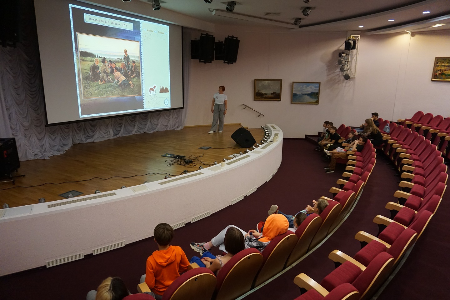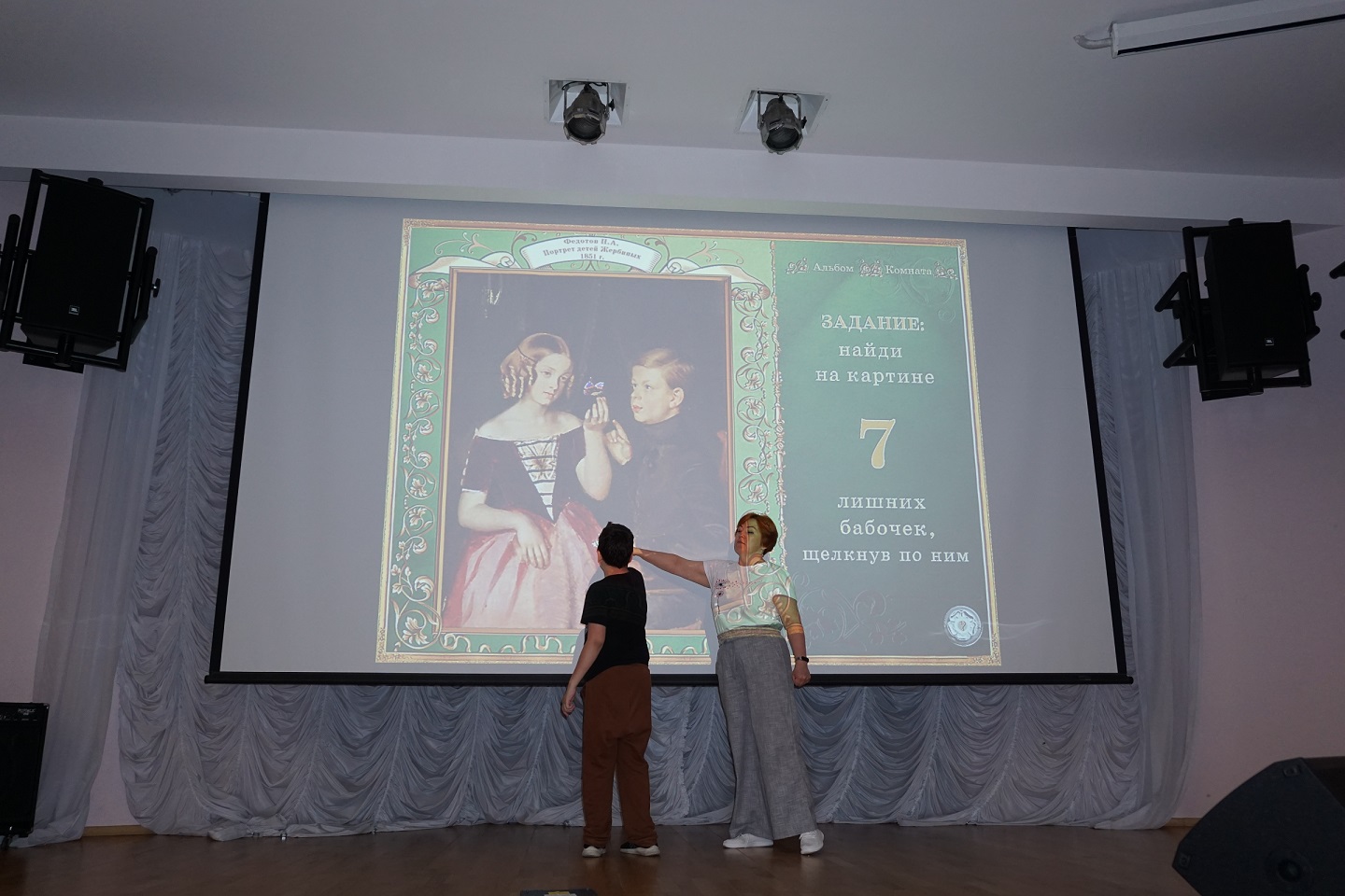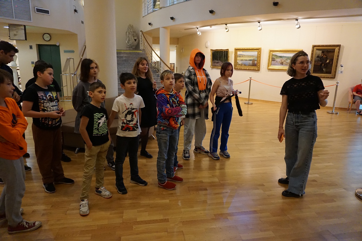 Сегодня воспитанники «Ханты-Мансийского центра социальной помощи семье и детям» поучаствовали сразу в двух музейных мероприятиях. В Государственном художественном музее для детей провели обзорную экскурсию по экспозиции «Русское искусство XVIII – XIX веков». Ну а после устроили занятие в информационно-образовательном центре «Русский музей: виртуальный филиал». Занятие – это игровая программа «Ровесники» по мотивам произведений русских живописцев из фондов Русского музея. Особое удовольствие детям доставила аудиопрограмма. Им нужно было отгадать звуки, которые могут иметь отношение к нарисованному на картине.