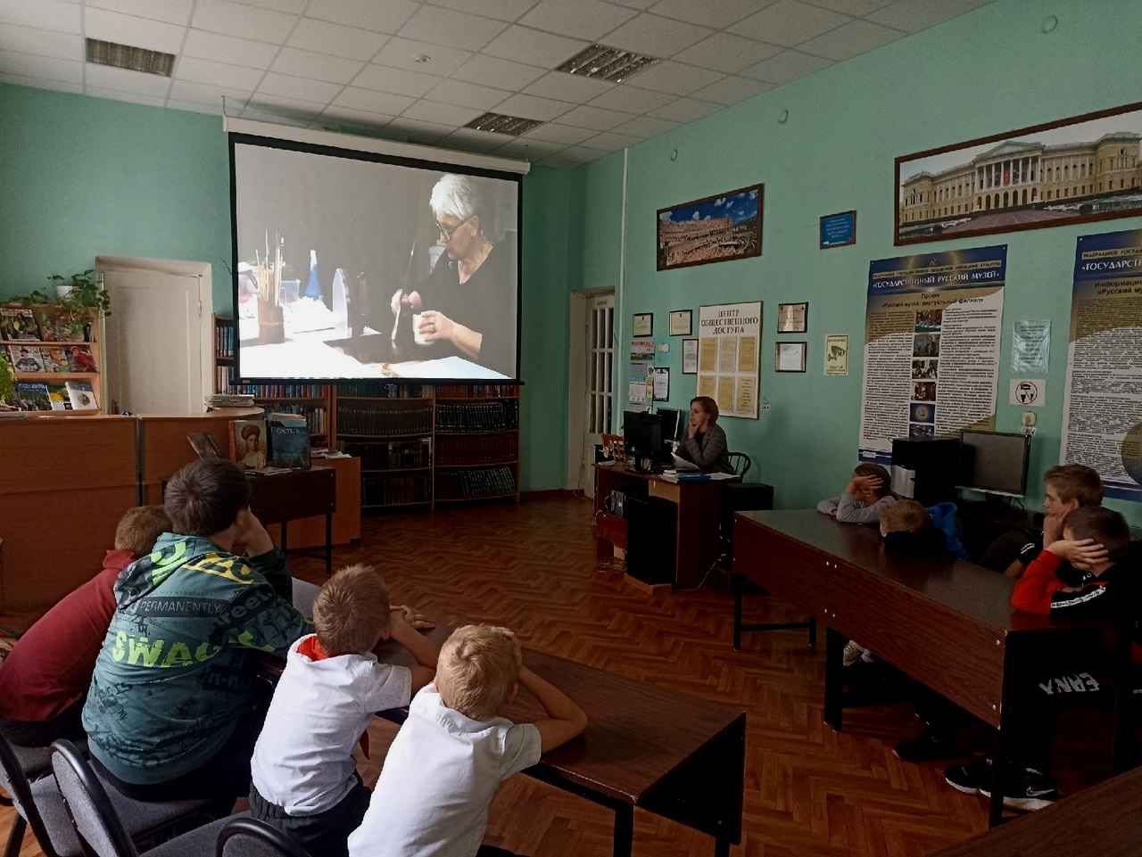 В ходе мероприятия дети посмотрели фильмы о реставрации старинной грамоты, гипсового бюста. А также были показаны фрагменты фильма "Гроот-гофмалер Елизаветы Петровны", из которого дети смогли узнать, как происходит реставрация картин.