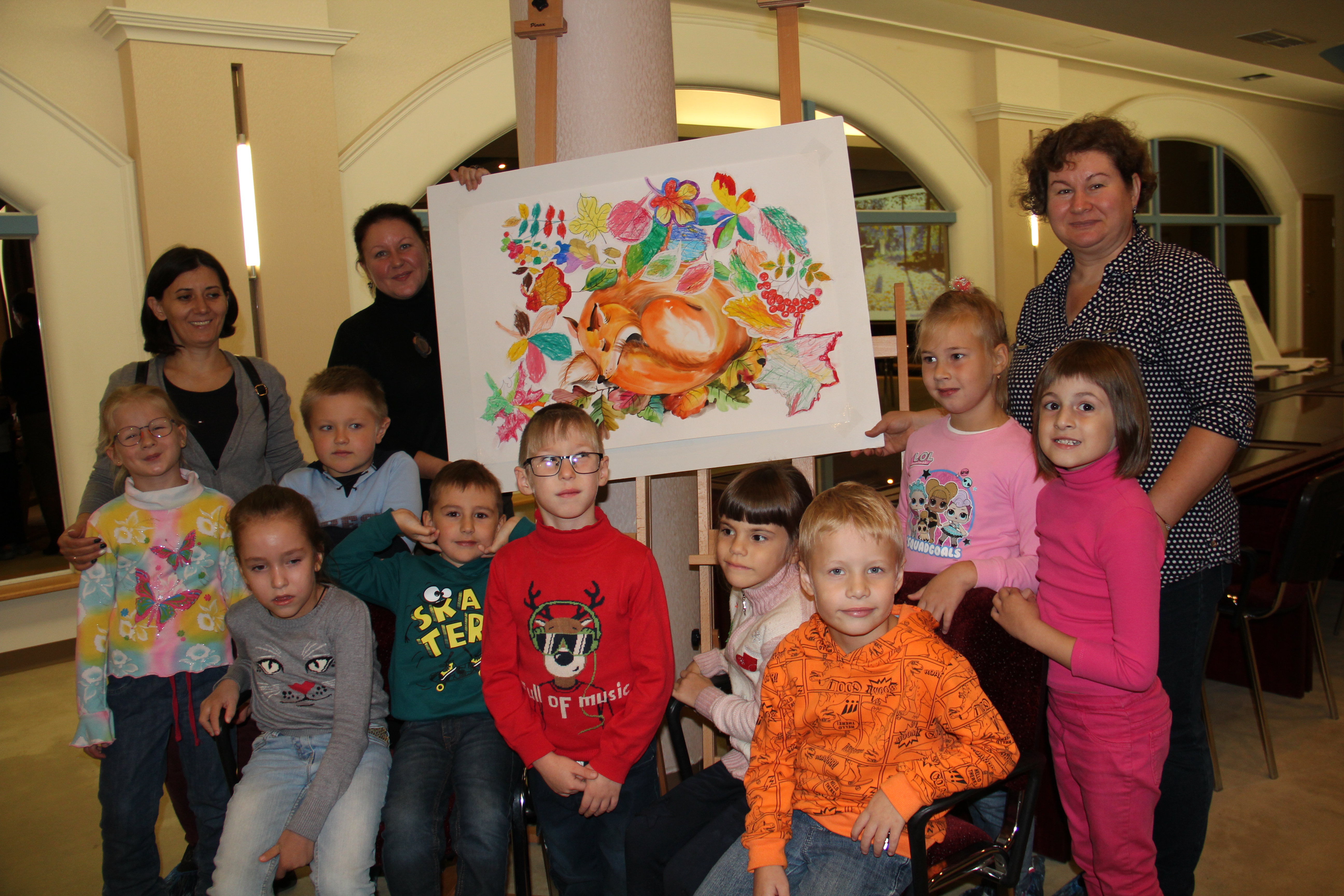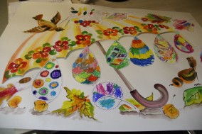 Вторая часть экскурсии была творческой, каждая группа попробовала себя в роли художника и вдохновившись строками стихов Елены Григорьевой «Доктор Осень», Александра Твардовского «Лес осенью», Александра Блока « Зайчик», смогли нарисовать осенние листья.