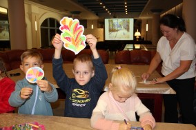 В творческое части нашей встречи мы предложили воспитателям и детям поиграть с осенними листьями, а почувствовать дыхание осени нам помогло стихотворение «Осень только взялась за работу» Маргариты Алигер.