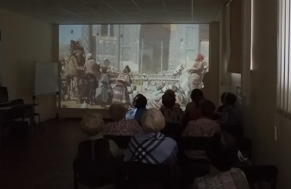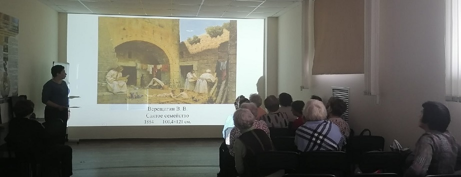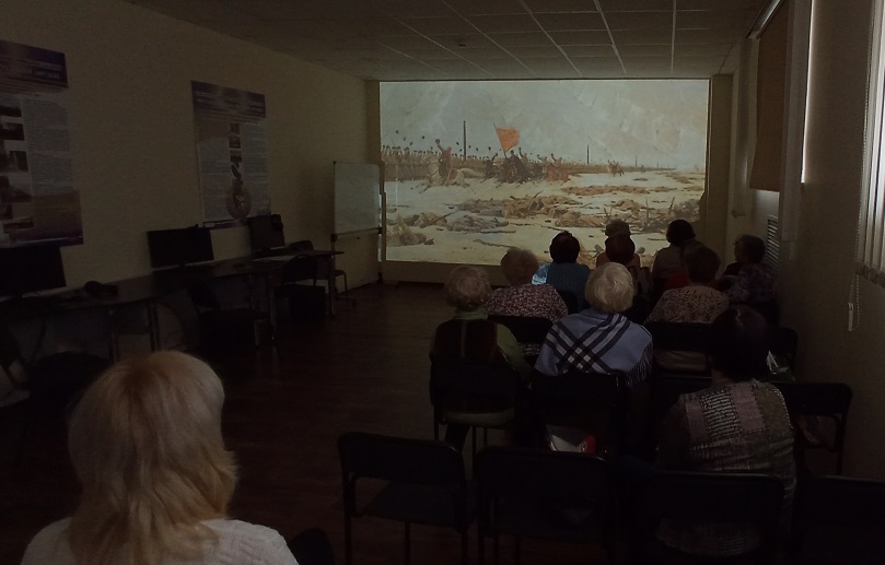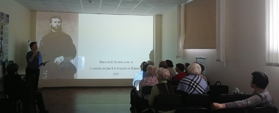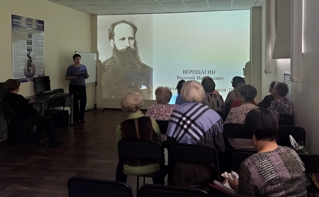 Виртуальный филиал Русского музея посетили члены клуба пожилых людей «Огонёк». Они узнали о жизни и творческом пути живописца-баталиста Василия Васильевича Верещагина.