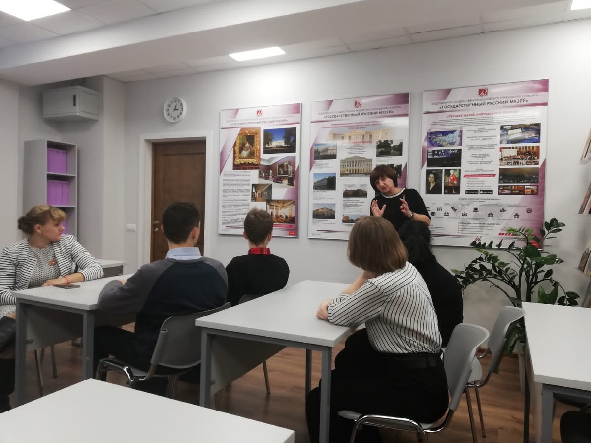 В этом учебном году в нашем ИЦ «Русский музей: виртуальный филиал» для учащихся 7- 9 классов школ Тосненского района проходят занятия «Комплекс Русского музея». Ребята узнают о возможностях ИЦ «Русский музей: виртуальный филиал» и знакомятся с историей Русского музея, его зданий и коллекций. В гостях у нас уже побывали учащиеся всех школ города Тосно.