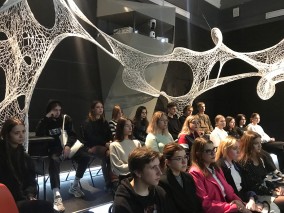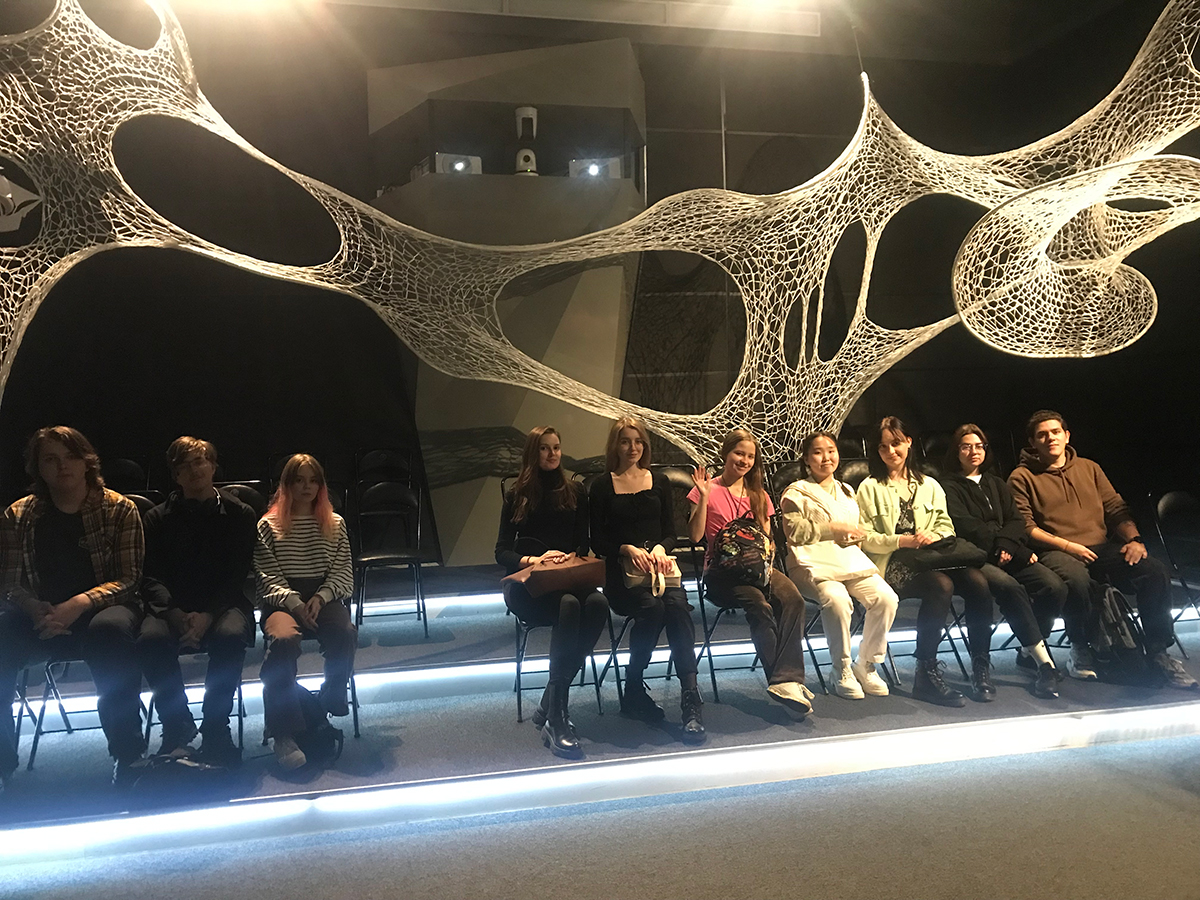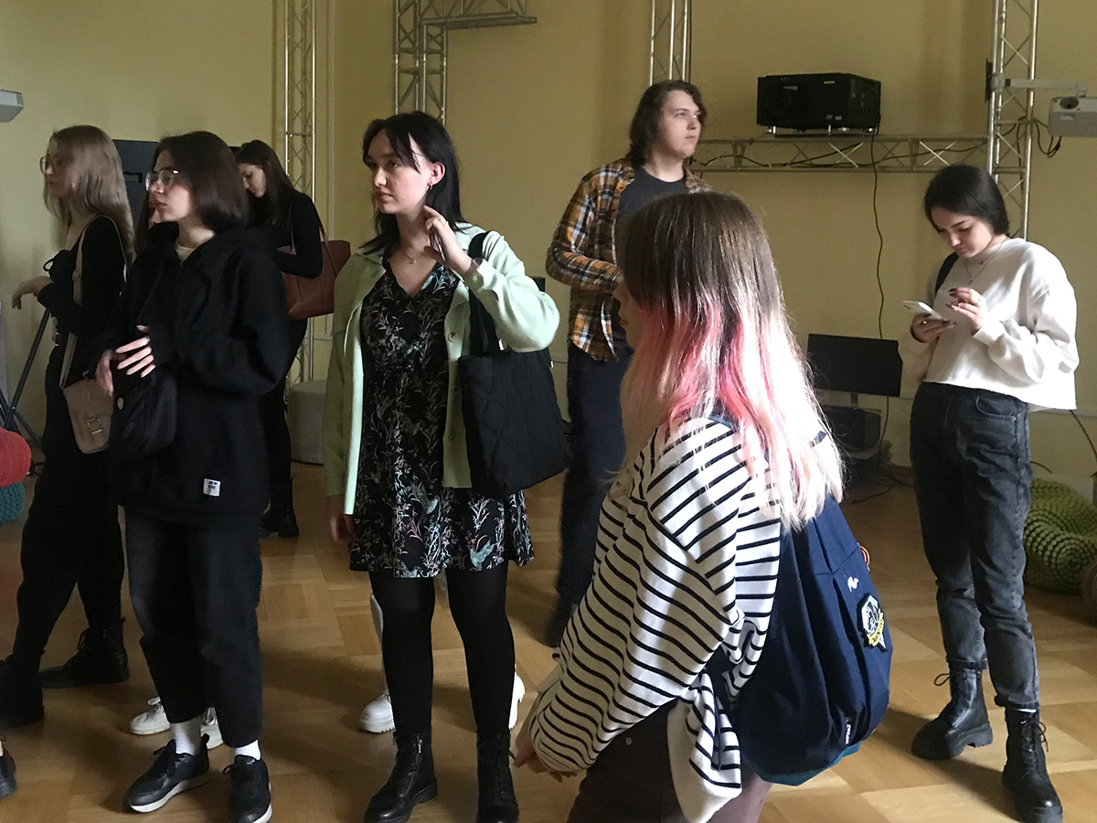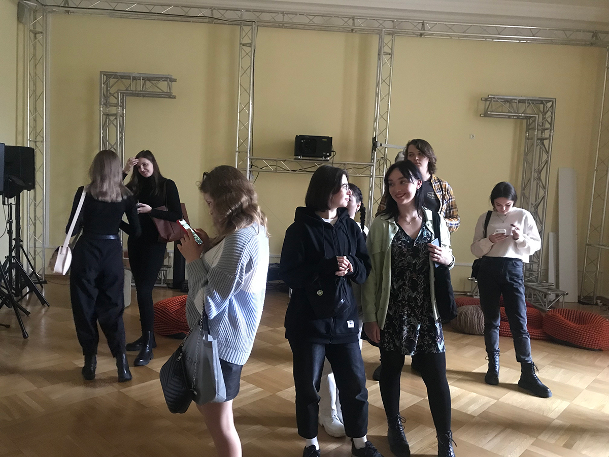 На втором этаже в камерном пространстве «ДраММатика» студентам рассказали о проекте, объединяющем в мультимедийном музейном пространстве театр, музыку и хореографию с уникальными возможностями современного цифрового искусства. Уже в самом названии проекта зафиксирована связь между театром, музеем и мультимедиа. К участию в «ДраММатике» приглашаются театральные, хореографические и музыкальные коллективы, готовые к реализации постановок, в которых коллекция Русского музея станет полноправным участником действия.