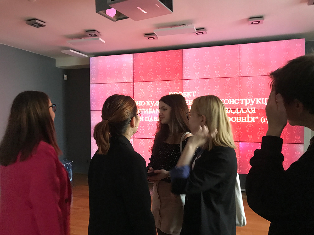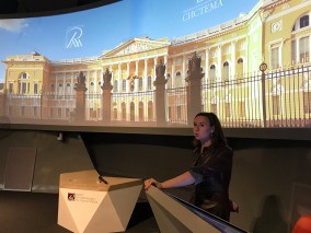 Зав. сектором организации мероприятий Центра мультимедиа Русского музея Анастасия Гордеева рассказала студентам, что экспозиция  для посетителей  была открыта еще в декабре 2016 года, а оборудование для нее начали закупать с 2006 года. С тех пор изменилось и понимание роли мультимедиа в музейном пространстве, и раскрылись новые его возможности.