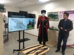 Рассказ сопровождался показом предметов из фондов музея - реплик холодного оружия и элементов казачьих костюмов.