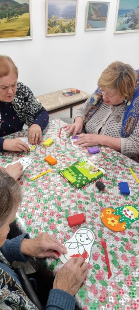 Затем для участников мероприятия было организовано творческое занятие «Русская матрёшка». Участникам напомнили, что 2022 год объявлен  Годом народного искусства и нематериального культурного наследия народов России, и предложили окунуться в мир необъятной русской культуры. Благодаря медиатеке Русского музея, гости познакомились с коллекцией народных деревянных игрушек второй половины XX- XXI вв. - майданскими «тарарушками» и семёновской матрёшкой, а потом приступили к рисованию куклы-матрёшки в технике пластилинография.
