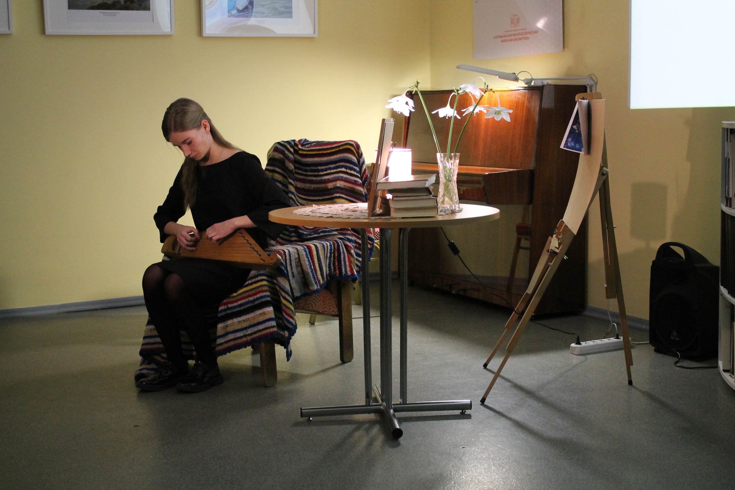 Особое впечатление оставило финальное слайд-шоу работ художницы в сопровождении живой мелодии кантеле, на котором играла Перминова Вера, студентка Петрозаводской государственной консерватории им. А.К.Глазунова.