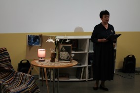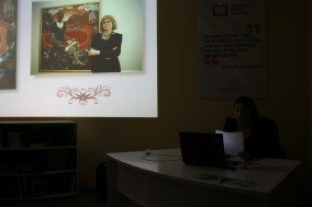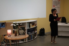 Ведущие вечера, Егошина Юлия Сергеевна, заведующий Приладожским центром Н.К.Рериха Сортавальской библиотеки, и Агабекян Сюзанна Гайковна, заведующий виртуальным филиалом Русского музея в г.Сортавала, рассказали об основных этапах жизни и творчества художницы, а Наталья Ивановна Зайцева, главный библиотекарь краеведческого центра библиотеки, примерив на себя образ самой Юфа, читала отрывки из воспоминаний художницы.