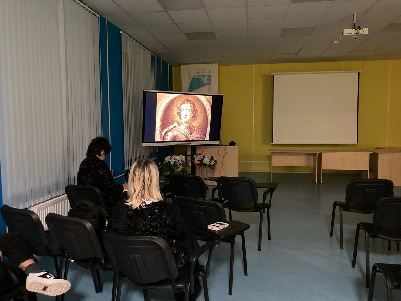 6 декабря было проведёно заключительное занятие (из 3-х) с просмотром авторского фильма директора Русского музея В. А. Гусева " Избранники Клио. Пётр I".