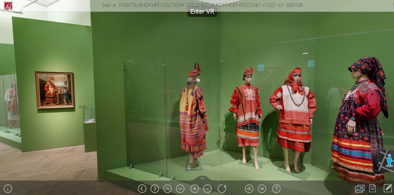 Виртуальный тур «Женский народный костюм» подготовлен специалистами службы «Виртуальный Русский музей» при участии сотрудников отдела народного искусства Русского музея и доступен на портале "Виртуальный Русский музей" в разделе Онлайн-ресурсы / "Виртуальные туры".