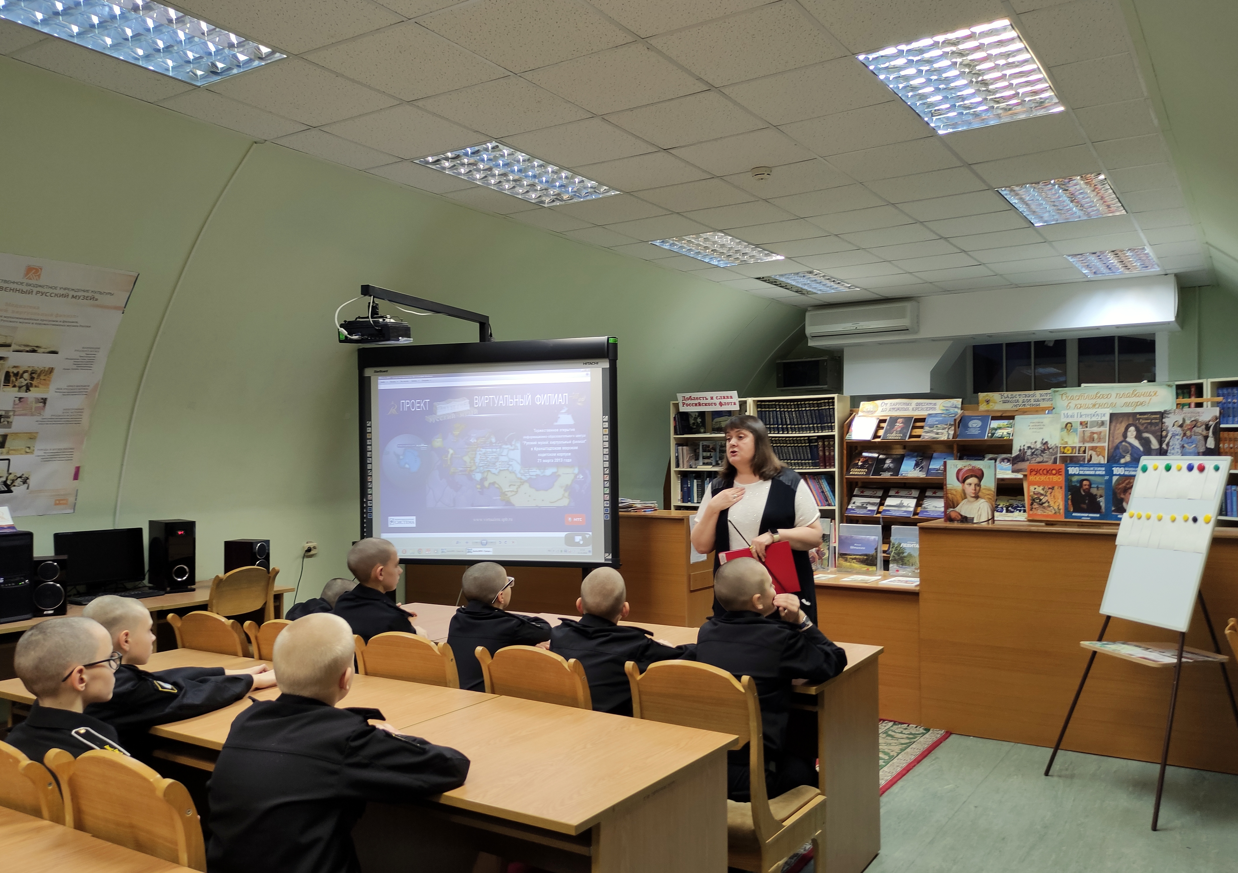 Кадеты 2-й учебной роты посетили виртуальный филиал Русского музея в читальном зале библиотеки нашего корпуса.