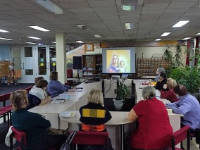 Слушатели факультета «Духовное возрождение» в очередной раз посетили ИОЦ «Русский музей: виртуальный филиал», находящийся в читальном зале библиотеки «Дворец книги». Для них был организован кинопоказ. Фильм «Живописец. Портретист. Иконописец. В.Л.Боровиковский» из авторской программы В.А.Гусева «Век Русского музея» очень понравился присутствующим. Мастер портретного жанра Боровиковский вызвал восхищение и как художник, который много и плодотворно работал в сфере религиозной живописи.