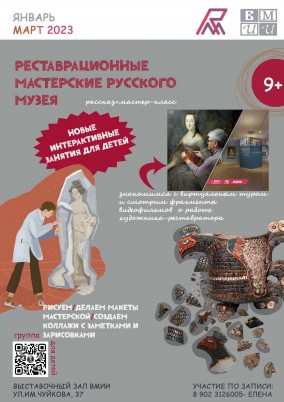 На своих занятиях мы часто обращаемся к виртуальным турам, доступным на портале «Виртуальный Русский музей». С января по март 2023 года мы планируем провести ряд интерактивных занятий для детей на основе тура «Сохраняя историю. Реставрационным мастерским Русского музея 100 лет». На них ребята познакомятся с выставкой, посмотрят фрагменты видеофильмов о реставрационных работах, а затем перейдут к практической части занятия, где оформят свои впечатления в рисунок, композицию или объёмный макет. Также ребята получат небольшие карточки заданий, где им нужно будет дописать какие-то сведения или домыслить предмет.