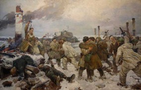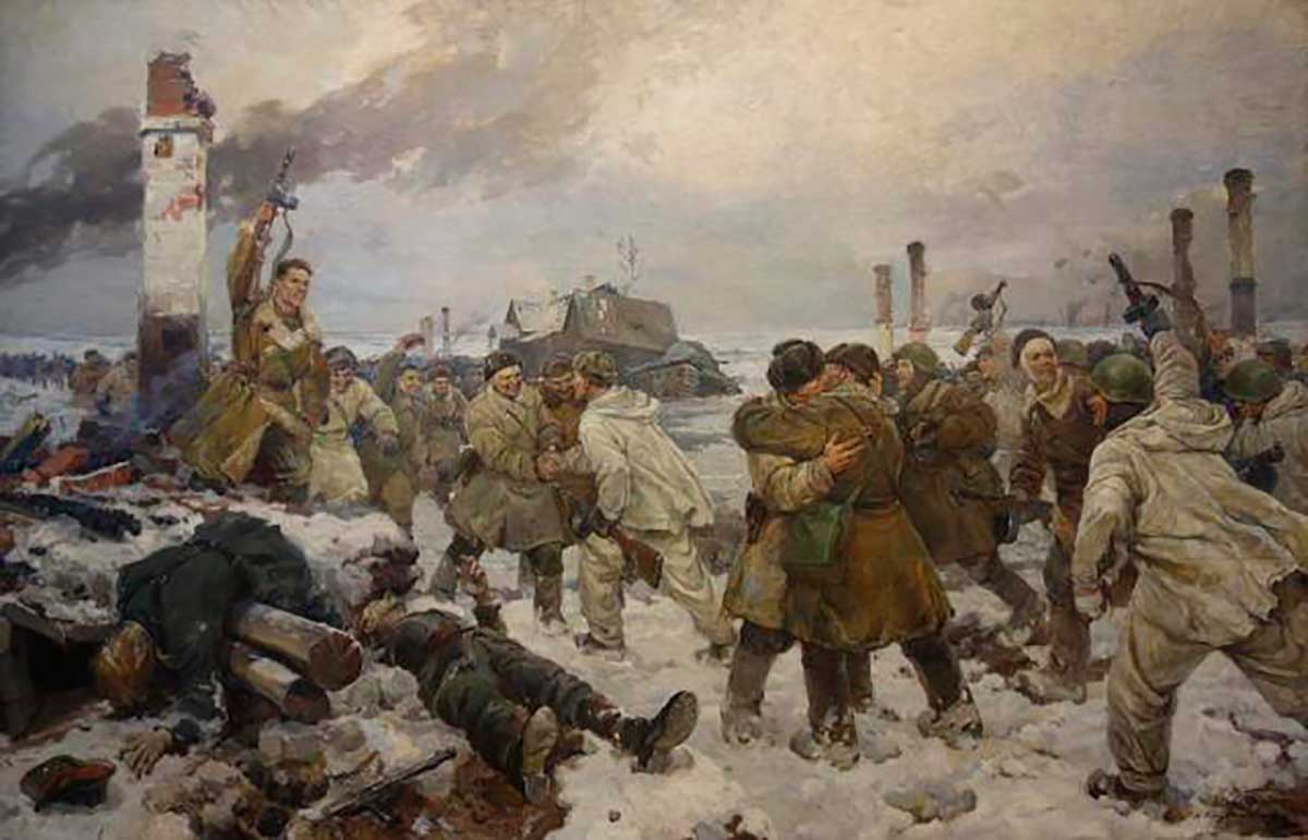 Одно из ключевых событий Ленинграда‒ прорыв блокады 18 января 1943 года ‒ запечатлели на своей картине И.А.Серебряный, Вл.А. Серов и А.А. Казанцев, которые написали ее за месяц и показали уже 23 февраля 1943 года на выставке к 25-й годовщине Красной Армии.